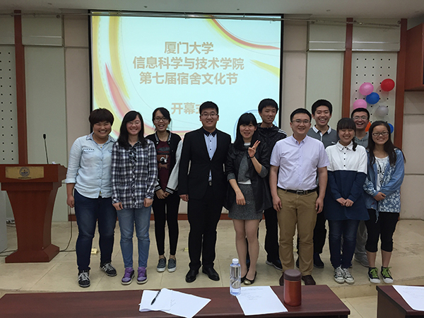 2015年4月21日周二下午四点半,信息学院第七届宿舍文化节开幕式暨宿舍心理健康教育讲座在海韵教学楼504教室隆重开幕。参与本次开幕式的有信息学院党委副书记李承华老师、厦大心理咨询与教育中心陈梅香老师、信息学院团委书记唐腾凤老师、信息学院团委副书记刘晓峰老师、辅导员黄艺明老师、廖伟老师及本科一、二年级学生。