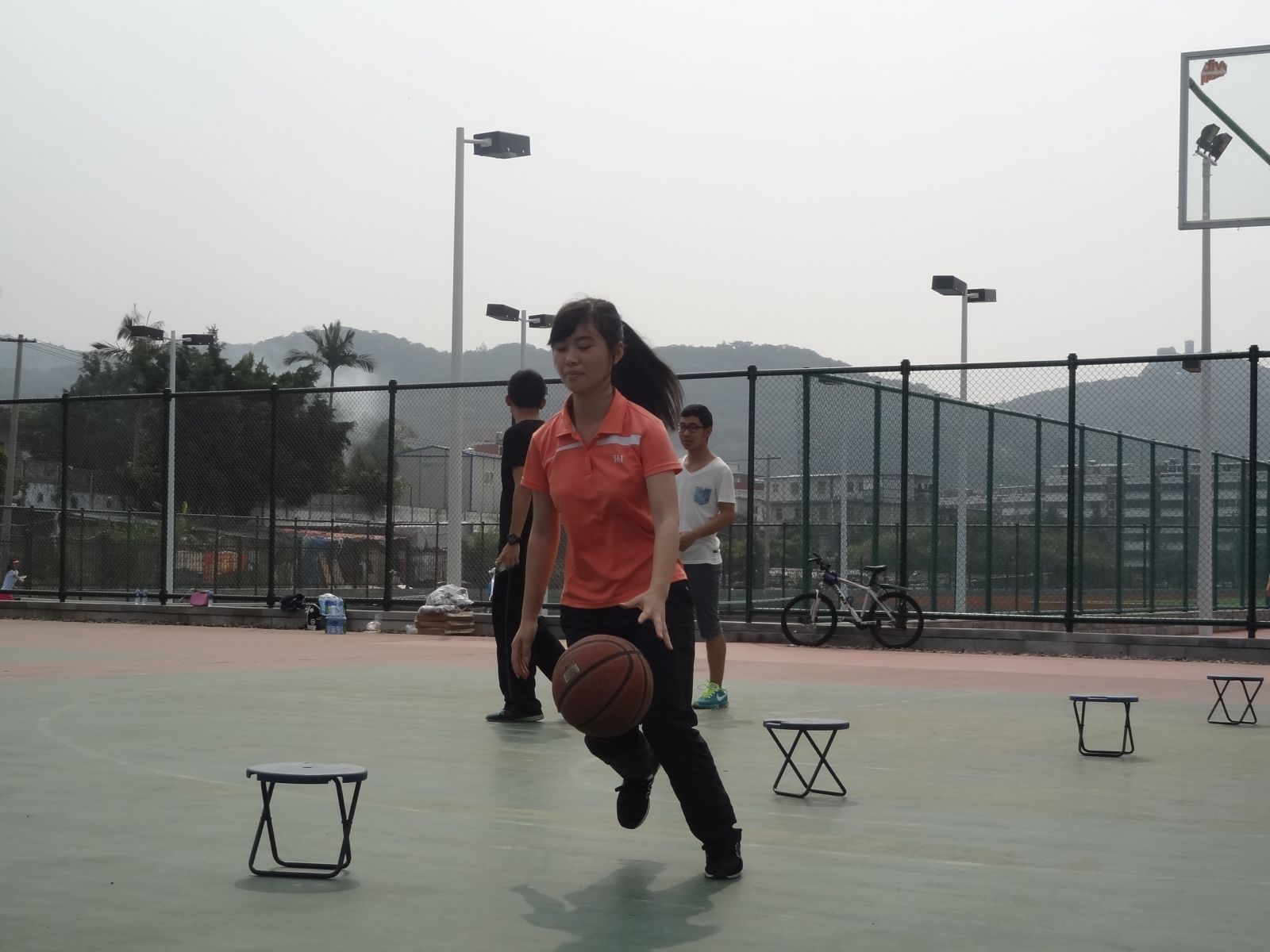 背靠背传球虽然已广为人知,但非常考验队友之间的默契程度,稍不留神,便有掉球的危险。于是,喊着号子一起横跳成为最标准的方式;不少队伍还会在准备活动中抓紧时间进行练习已达到最佳状态。第二个投篮大赛看似平常,其实内含深机。为增加趣味性,投篮规则中增加了一条:各组人员在投篮前原地转圈!所以,这可以称得上是一场半规管(维持姿势和平衡有关的内耳感受装置)的较量。即使到了第三个比赛,队员们仍需要——转圈!在接力运球中,女生需运球绕过障碍,而男生则要进行绕着障碍转圈,之后才能通过。