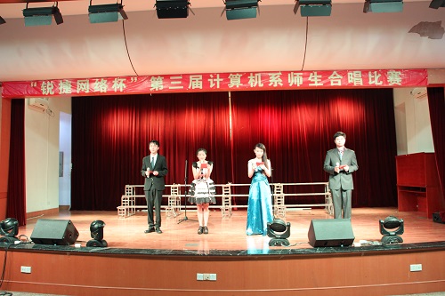 2015年5月9日星期六晚,“锐捷杯”厦门大学信息科学与技术学院计算机科学系第三届师生合唱比赛在法学院模拟法庭隆重拉开帷幕。计算机系系主任雷蕴奇教授、副主任鞠颖教授、学院团委副书记韩海雄、郑晖阁等出席了本次比赛。比赛邀请了厦门大学合唱团、厦门大学艺术学院音乐表演专业的同学作为评委为各参赛队伍打分。