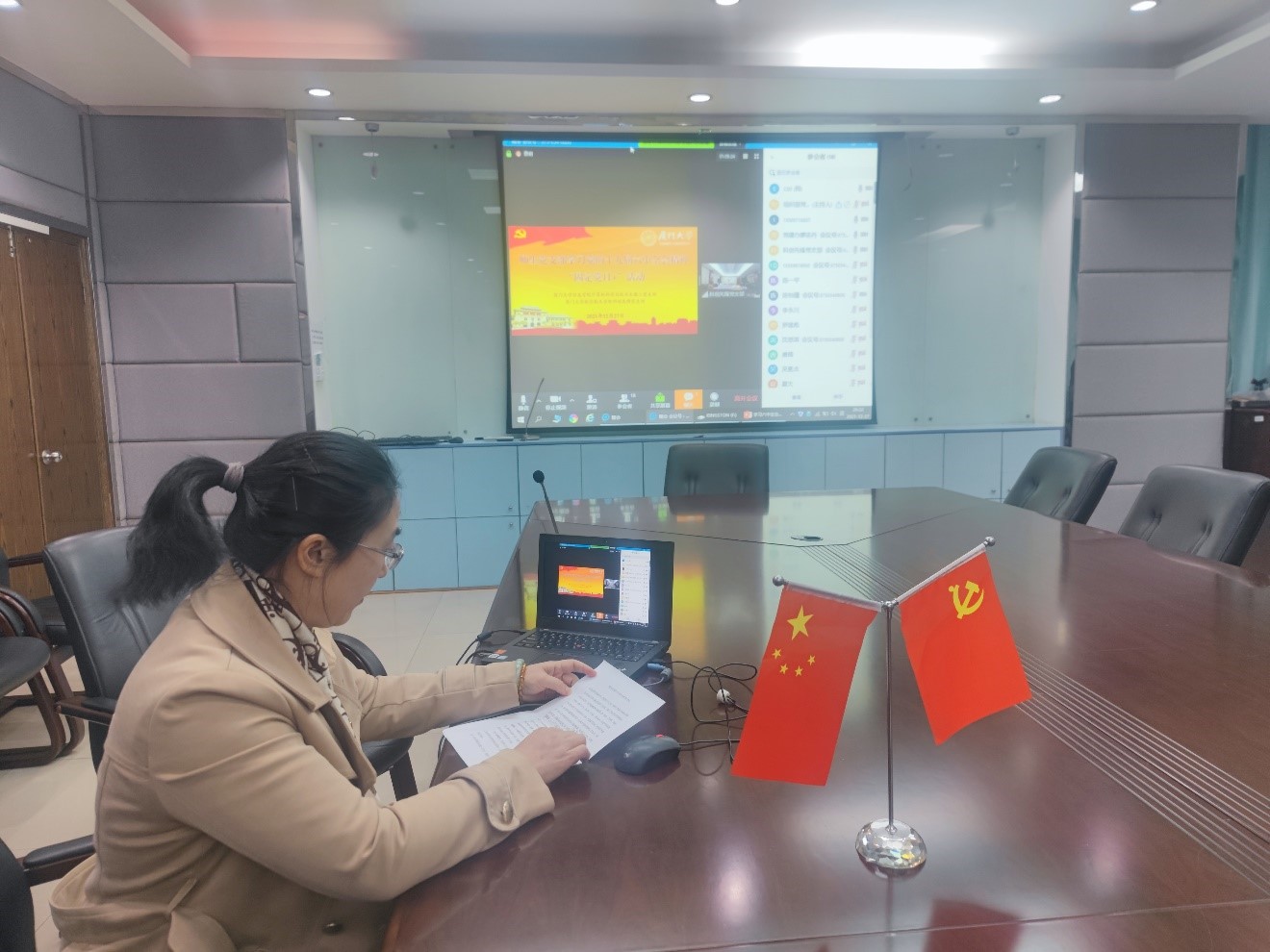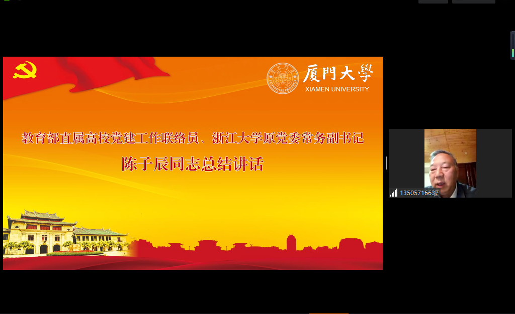 12月27日晚,信息学院计算机科学与技术系教工党支部联合航空航天学院科创先锋本科生党支部举行联合“固定党日+”活动,深入学习领会十九届六中全会精神。教育部直属高校党建工作联络员陈子辰,厦门大学党委党的建设办公室主任兼组织部副部长、教师工作部副部长廖志丹通过视频在线参加会议。