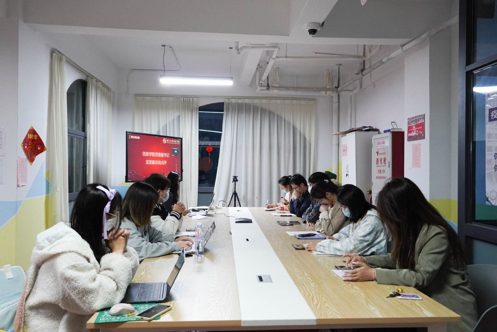 417日晚,信息学院本科生124党支部在翔安校区笃行4“一站式”联合举办题为 “青春勇担当,共筑中国梦”的“固定党日+”活动,学院师生共聚一堂,就“铸牢中华民族共同体意识”畅所欲言。活动以线上线下相结合的方式开展,学院党委副书记龙坚毅、少数民族预科管理中心团委书记王骥洲、学院团委副书记刘茜、支部书记和全体党员出席活动,本科生第2党支部藏族学生赵睿担任主持人。