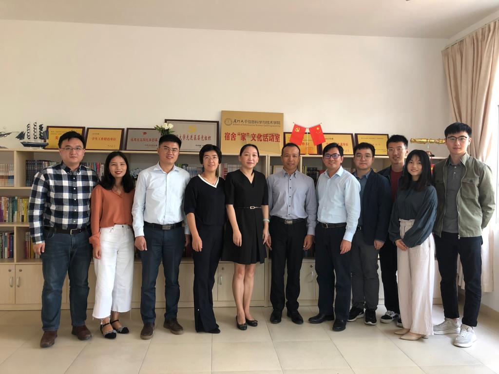 会上,许美霞对赵观音一行的到来表示热烈欢迎,并介绍了厦门大学“一站式”学生社区工作情况,特别是海韵学生公寓共享空间的情况。李承华汇报了信息学院党委探索“三全育人”工作体系,深入开展宿舍“家”文化建设情况,并重点介绍了学院在教师入住学生宿舍,各类育人要素融入学生宿舍等方面所做的工作及取得成效。赵观音介绍了广东外语外贸大学金融学院学生工作方面的经验,并详细了解信息学院在宿舍“家”文化建设方面的工作。他希望未来两个学院能够加强在宿舍工作方面的交流。