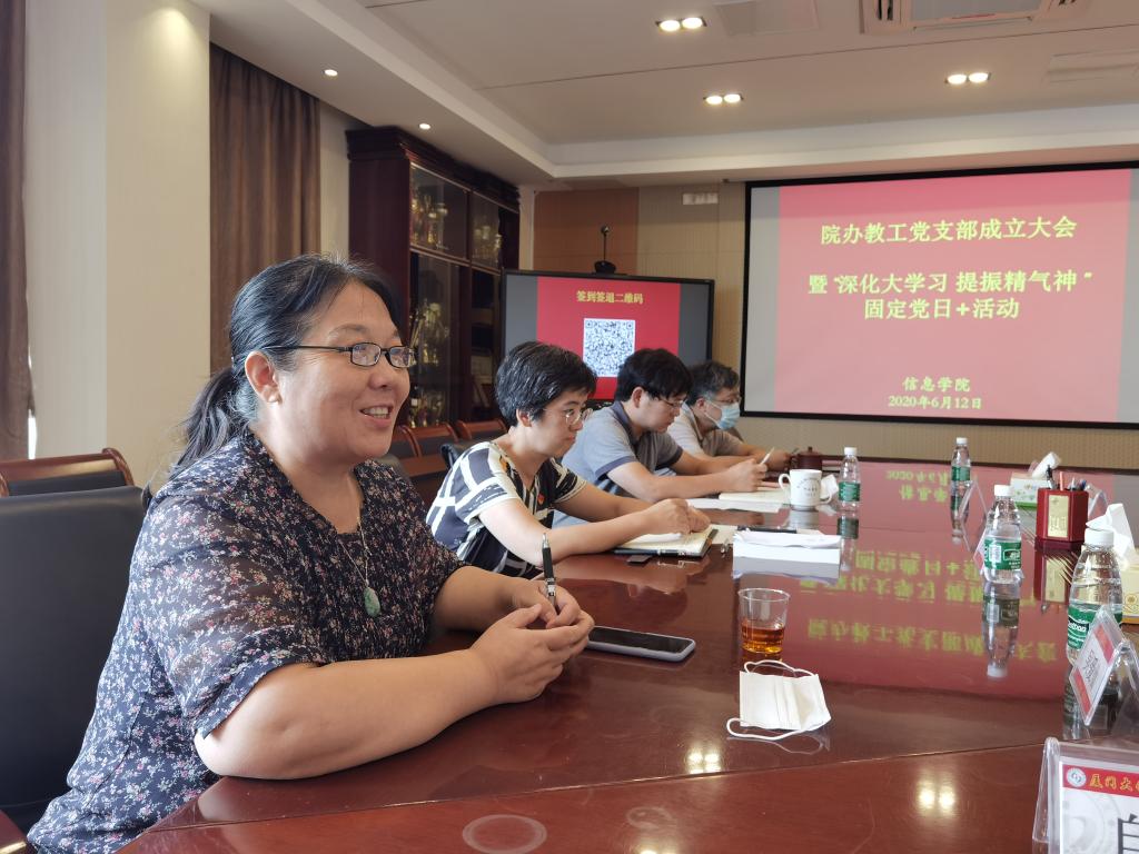 6月12日上午,信息学院院办教工党支部成立大会在院行政楼C610举行,学院党委副书记李承华同志主持大会。