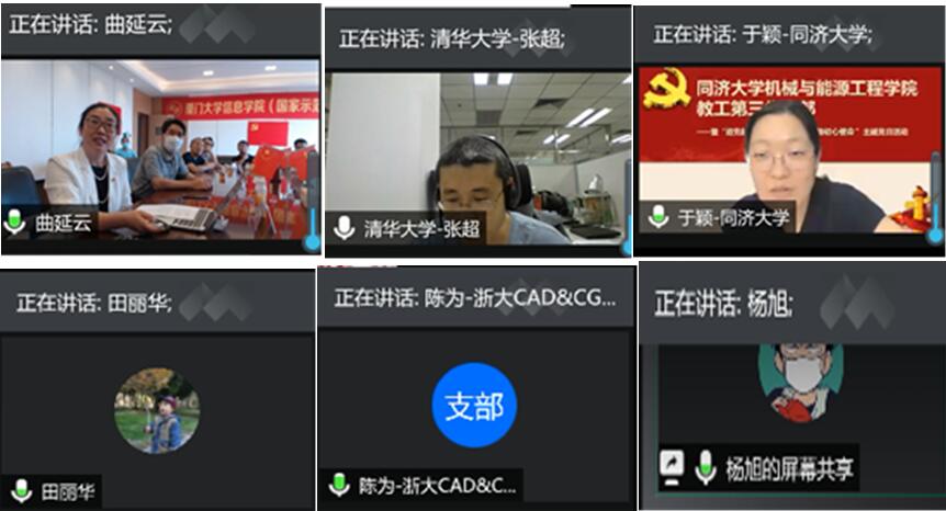6月29日,计算机科学系教工党支部与国内5所高校及科研院所基层党支部举行联合主题党日活动视频会议,以“讲战疫故事”“悟初心使命”等方式共同庆祝中国共产党成立99周年。本次活动由计算机系教工党支部发起,清华大学电子系通信所教工党支部、同济大学机械与能源工程学院第三教工党支部、西安交通大学电信学部软件学院教工党支部、浙江大学CAD&CG国家重点实验室党支部、中科院自动化所复杂国重第五党支部等支部共同参与。教育部直属高校党建工作联络员陈子辰,厦门大学党委党的建设办公室主任兼组织部副部长、教师工作部副部长廖志丹通过视频在线参加会议。活动由计算机科学系教工党支部书记曲延云主持。