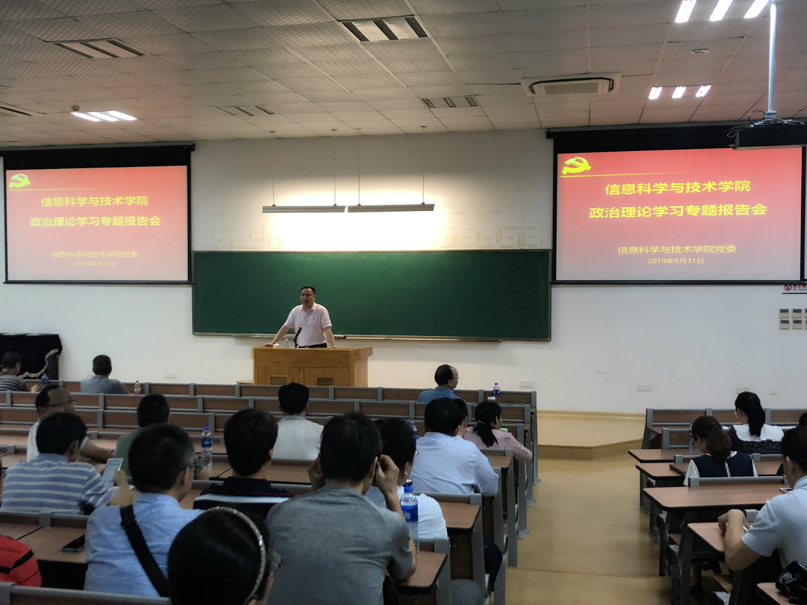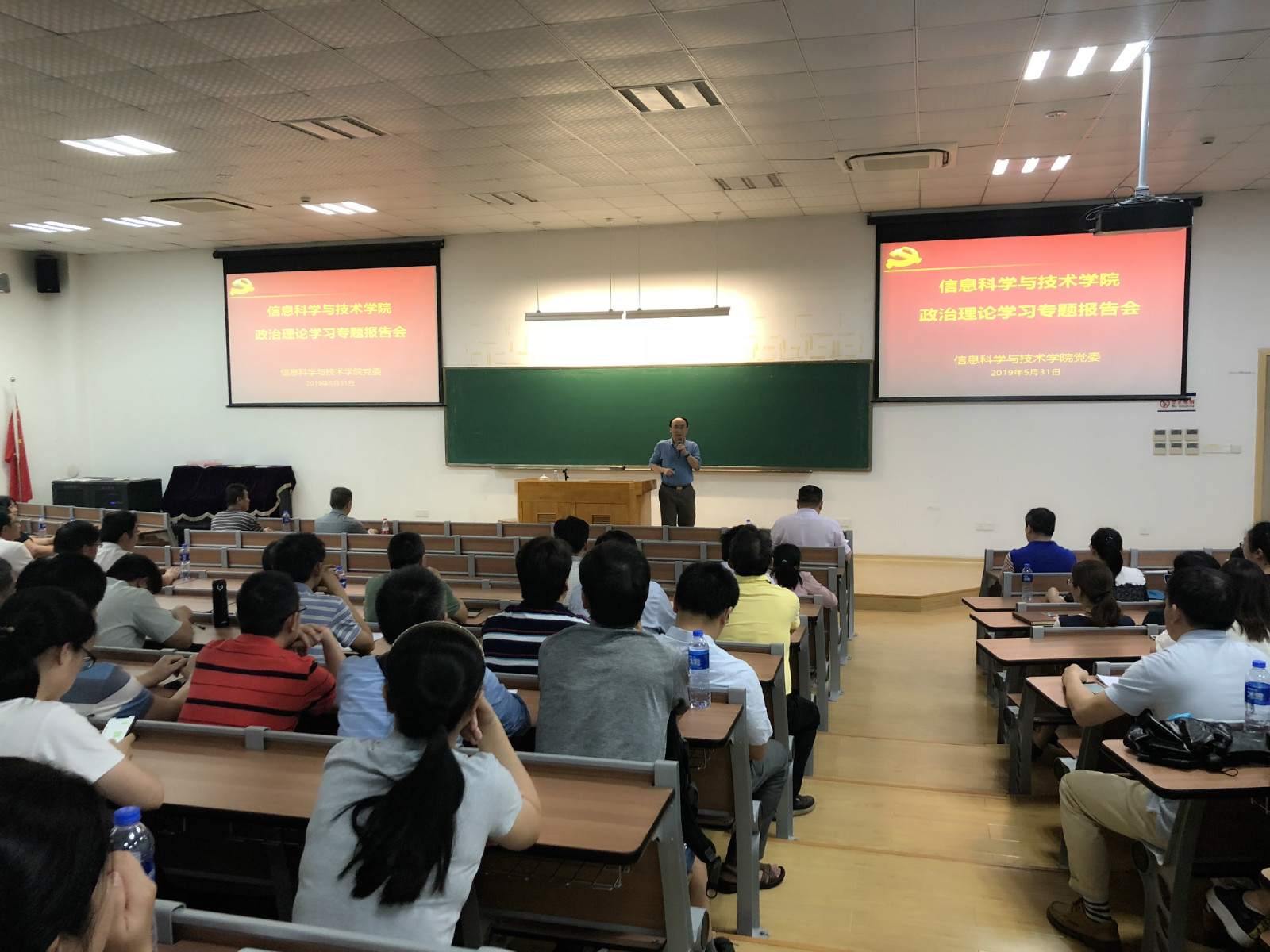 5月31日下午,信息科学与技术学院在物理大楼117报告厅召开政治理论学习大会。“闽江学者”特聘教授、“两岸关系和平发展协同创新中心”执行主任、台湾研究院教授刘国深受邀为全院教职工作了《台海局势与国家统一前景》专题报告。会议由学院党委书记刘主持。