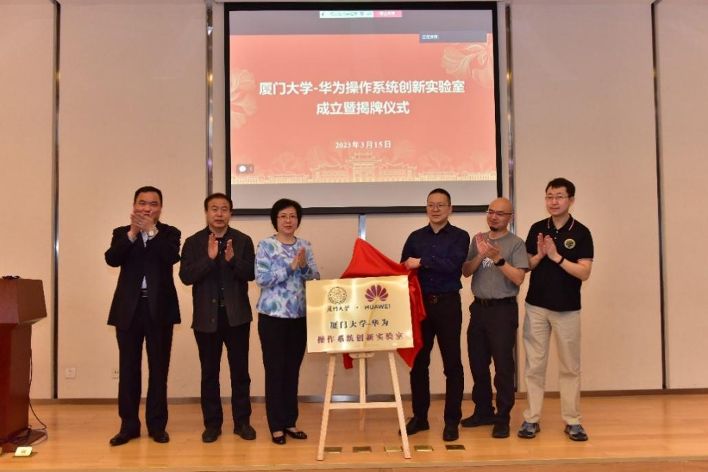 2023年3月15日,“厦门大学—华为操作系统创新实验室”成立暨揭牌仪式在厦门大学科学艺术中心成功举行。厦门大学党委常委、副校长邓朝晖,闽江学院院长、创新实验室主任舒继武,信息学院党委书记刘弢、华为中央软件院欧拉部部长万汉阳、庞加莱实验室主任胡欣蔚、OS内核实验室副主任贾宁等领导和嘉宾出席仪式。本次仪式由刘弢主持。