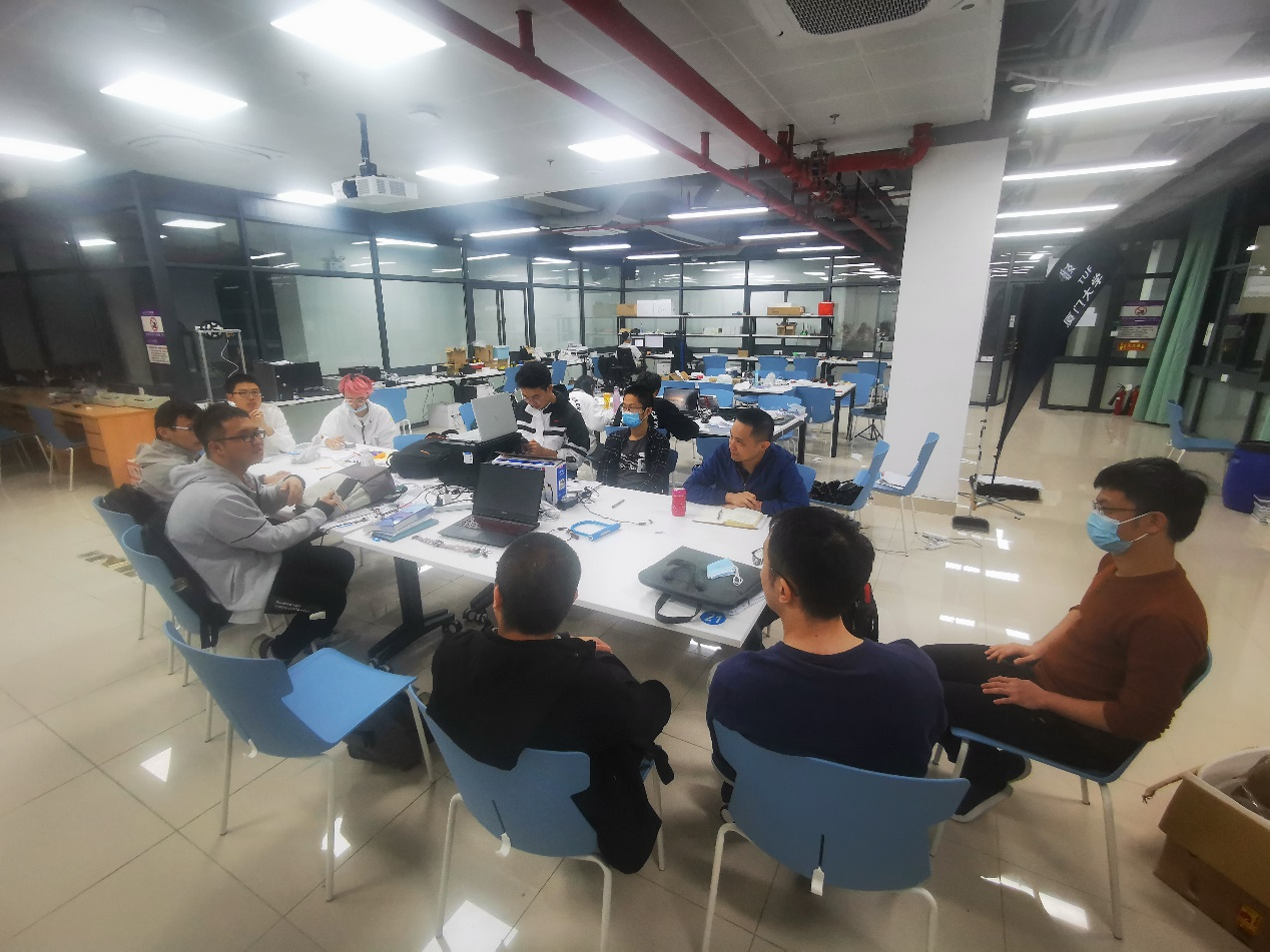 接下来是围绕通信工程导论课的方向交流。洪学敏教授按照“导航与位置服务”,“水声通信与海洋信息”,“宽带无线移动通信”,“智能信号处理”四个方向为不同研究方向的同学分组,安排师生面对面交流答疑。通过热烈交流与讨论,2020级同学迸发出了诸多思维火花,对专业特色也表现出了极高的热情,讨论持续了近90分钟。