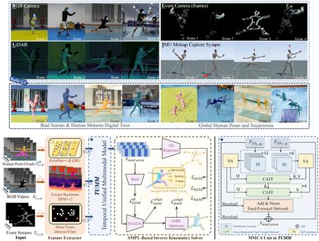针对复杂且快速的全局人体动作捕捉问题,本文基于激光雷达、IMU、RGB相机和事件相机构建了多模态人体运动数据集-RELI11D,包括10名采集者在7个不同的真实体育场景中进行的5项体育运动动作。本文还提出了一种全局人体姿态估计任务上的多模态Baseline-LEIR,设计了适用于人体姿态重建的交叉注意融合策略。实验表明,LEIR在快速运动和日常运动方面表现出较好性能,且验证多模态数据集特征可有效提升HPE性能。
