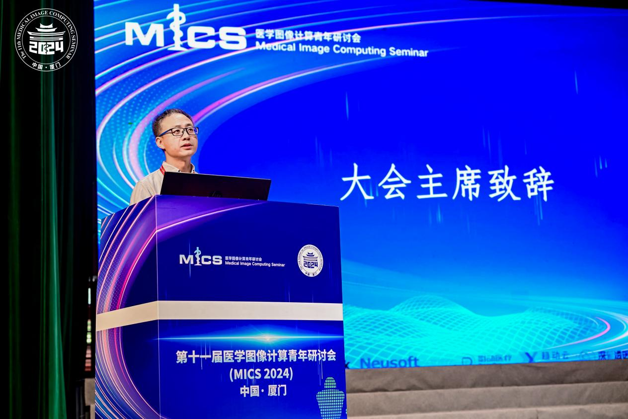 随后,沈定刚在致辞中指出,近年来,医学图像领域的顶级期刊和会议中,中国大陆学者的文章数量逐年攀升,这不仅展示了国内学者在这一领域的研究实力,也为国际学术界注入了新鲜血液。他鼓励广大研究者继续提升文章质量,争取在国际舞台上取得更大的突破。他还提到,工业界对医学图像技术的应用越来越广泛,特别是在当前AI大模型时代,相关技术的发展培养了一批亟需的人才,为产业创新提供了强大支持,这一趋势不仅促进了技术进步,也推动了医学图像技术在实际应用中的落地和普及。最后,他表达了对MICS未来发展的期望,希望大会能够始终保持初心,成为年轻学者展示才华的平台,希望与会者能结合临床实际需求,开展更加落地的研究工作,为医学图像技术的发展和应用做出更大贡献。