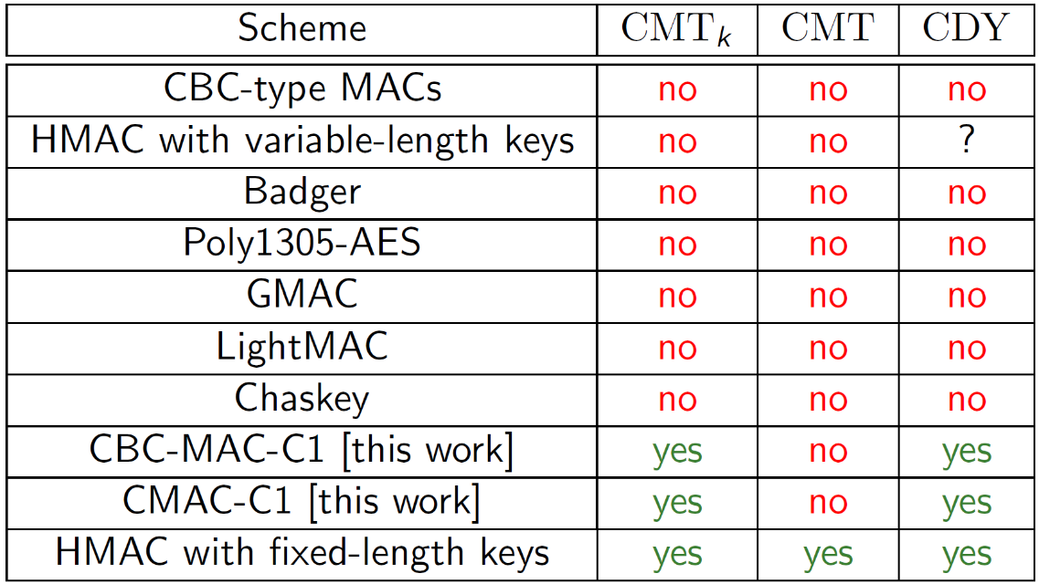 图 1 消息认证码的承诺安全性总结