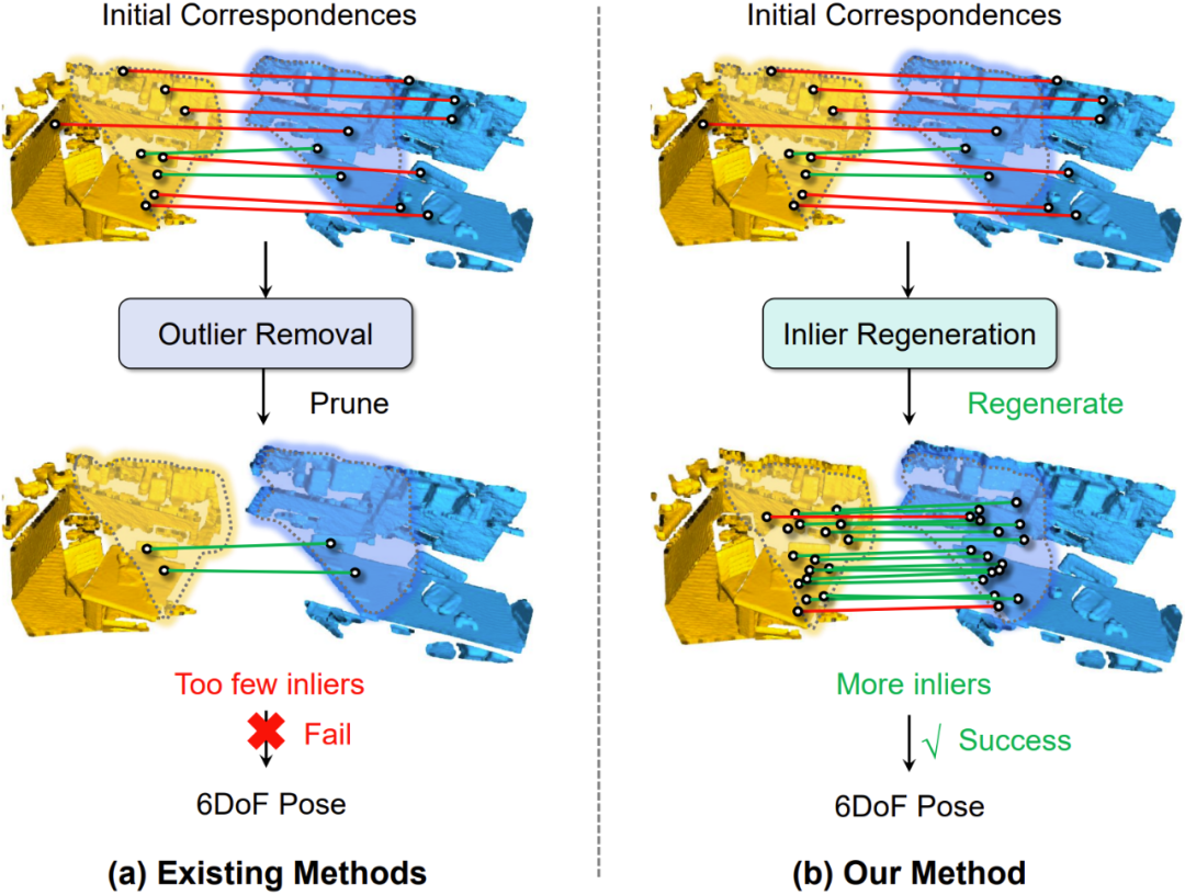 简介:现有的对应关系优化方法无法在极端离群点比例下正确识别准确的对应关系。为此,本文提出了一种名为Regor的渐进式点云配准方法。通过渐进式的局部匹配与全局优化,该方法能够在大量离群点的情况下,生成高质量的匹配结果。大量室内和室外数据集的实验结果表明,所提方法显著优于现有的离群点去除技术。最为关键的是,Regor比现有离群点去除方法获得了10倍以上的正确对应关系。