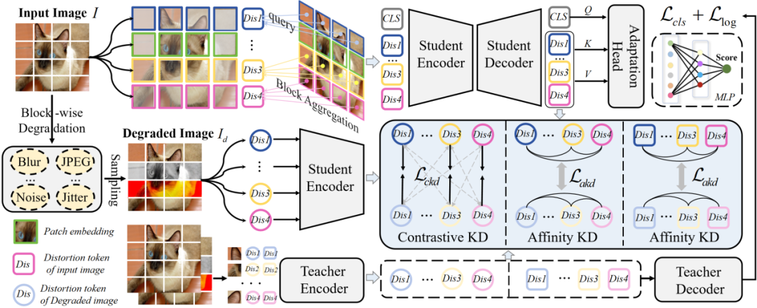 简介:在盲图像质量评价(BIQA)领域,由于自然环境中失真类型的多样性,准确评估真实失真图像的质量是一个巨大的挑战。现有的最先进的IQA方法通过对整个图像施加一系列失真来建立全局失真先验,但这些方法难以有效处理具有空间变化失真的图像。为解决这个问题,本文提出一种新的IQA框架,利用知识蒸馏来感知空间异构失真,增强质量失真感知。具体而言,本文提出了一种基于分块的退化建模方法,对图像的不同空间块应用不同的失真,从而扩展了局部失真先验。在此基础上,本文设计了一个分块聚合和过滤模块,能够对图像中不同失真区域的质量信息进行细粒度关注。此外,为了在保持质量感知的同时增强不同区域失真的感知粒度,本文引入了对比知识蒸馏和亲和知识蒸馏策略,分别学习不同区域的失真判别能力和失真相关性。在多个标准IQA数据集上进行的实验证明了所提出方法的有效性。