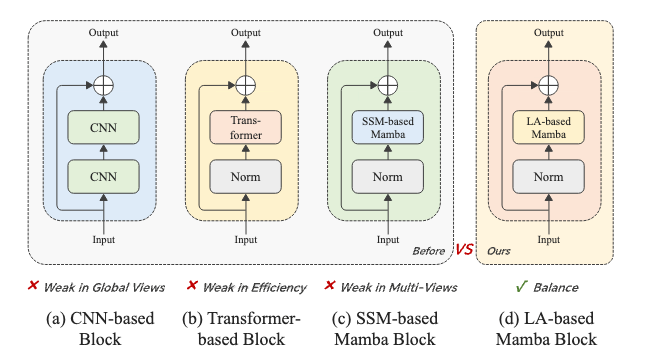 简介:图像修复作为计算机视觉领域的核心课题,在深度学习驱动下已迈入全新阶段。当前基于CNN和Transformer的主流方法虽取得进展,但面临全局感受野受限与计算效率不足的双重挑战。针对这些问题,本研究创新性地提出基于ACL架构的模型:通过利用Mamba模型中状态空间模型(SSM)与线性注意力(linear attention)的表达同构性,采用线性注意力模块取代传统SSM作为编解码器核心,在保持全局感知能力的同时显著提升计算效率。此外,设计的多尺度空洞卷积局部增强模块为模型注入局部学习能力,能有效提取粗细粒度特征以优化局部细节重建。实验表明,该模型在去模糊、去雨等经典IR任务中均取得优异性能,且参数量与计算量(FLOPs)保持较低水平,可为移动端实时图像增强、安防监控画质优化等场景提供了更轻量高效的解决方案。