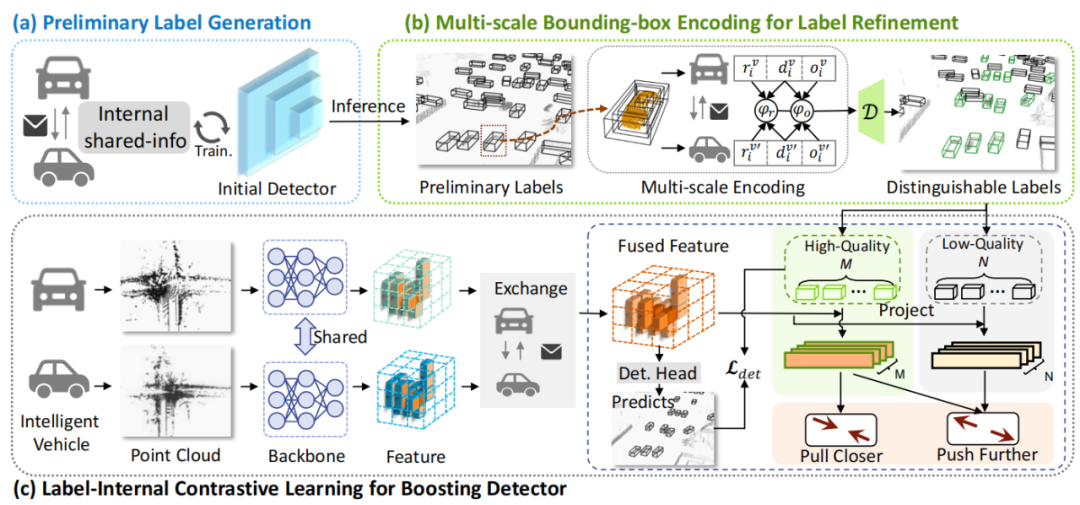 简介:无监督3D目标检测在离线标注中面临数据稀疏性和视角限制的问题,导致基于聚类拟合生成的伪标签质量低。为此,本文提出了一种新颖的无监督方法DotA,从多智能体间的点云扫描中学习检测目标,无需外部标注。DOtA通过协作智能体共享的姿态和形状信息初始化检测器并推断初步标签,再结合智能体间的互补观测进行多尺度编码区分高低质量标签,用于指导特征学习。实验表明,DOtA在V2V4Real和OPV2V数据集上优于现有最优方法,并验证了其在协作感知框架下的有效性。