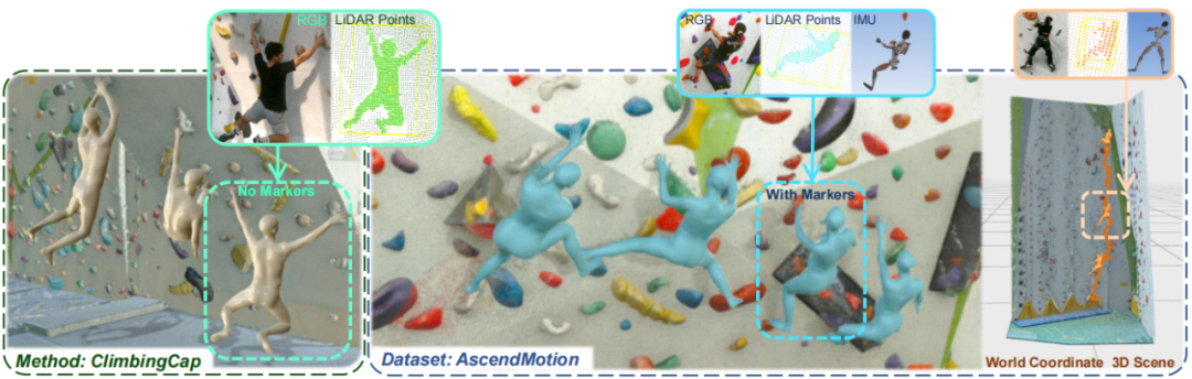简介:攀岩是一类新兴的运动,风靡全球备受青睐。我国在2024年奥运会上获得了两枚攀岩银牌,通过攀岩动捕算法对攀岩动作进行精细分析能够有助于提高运动员训练效果,提高比赛成绩。但是现有国际上动作捕捉算法对攀岩动作的准确度较低,有两个原因,一是现有的攀岩数据集数量有限,二是现有攀岩算法没有充分考虑全局坐标系4D人体攀爬运动恢复。本文收集了一个大规模、质量高且具有挑战性的攀爬运动数据集AscendMotion,提出了采用RGB相机和激光雷达在全局坐标系中对4D人体攀爬运动进行运动恢复的动捕算法ClimbingCap。实验验证了该数据集的质量以及本文提出的攀岩动捕算法的有效性。