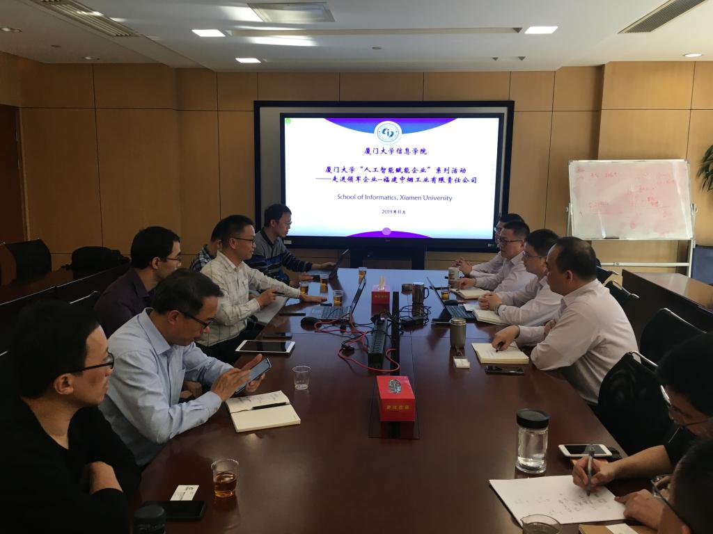 11月27日下午,我院副院长姚俊峰教授、信息与通信工程系副主任孙海信、计算机科学系杨晨晖教授、软件工程系刘昆宏教授、高星副教授一行人走进福建中烟工业有限责任公司开展我院“人工智能赋能企业”活动的第三场活动。福建中烟工业有限责任公司代表张宏铭等参加了此次会议。