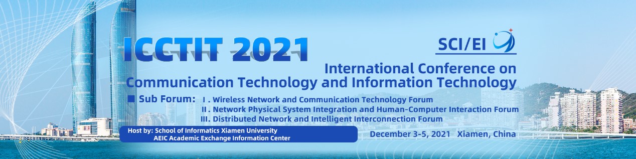 为扩大和促进信息、计算机科学技术及其应用领域的学术交流与相互合作,2021年通讯技术与信息科技国际学术会议(ICCTIT 2021)将于2021年12月3-5日在厦门召开,诚邀国内外通讯技术与信息科技研究学者和实践者报名参加。本次会议是厦门大学信息学院与AEIC学术交流中心联合主办举行的年度会议。