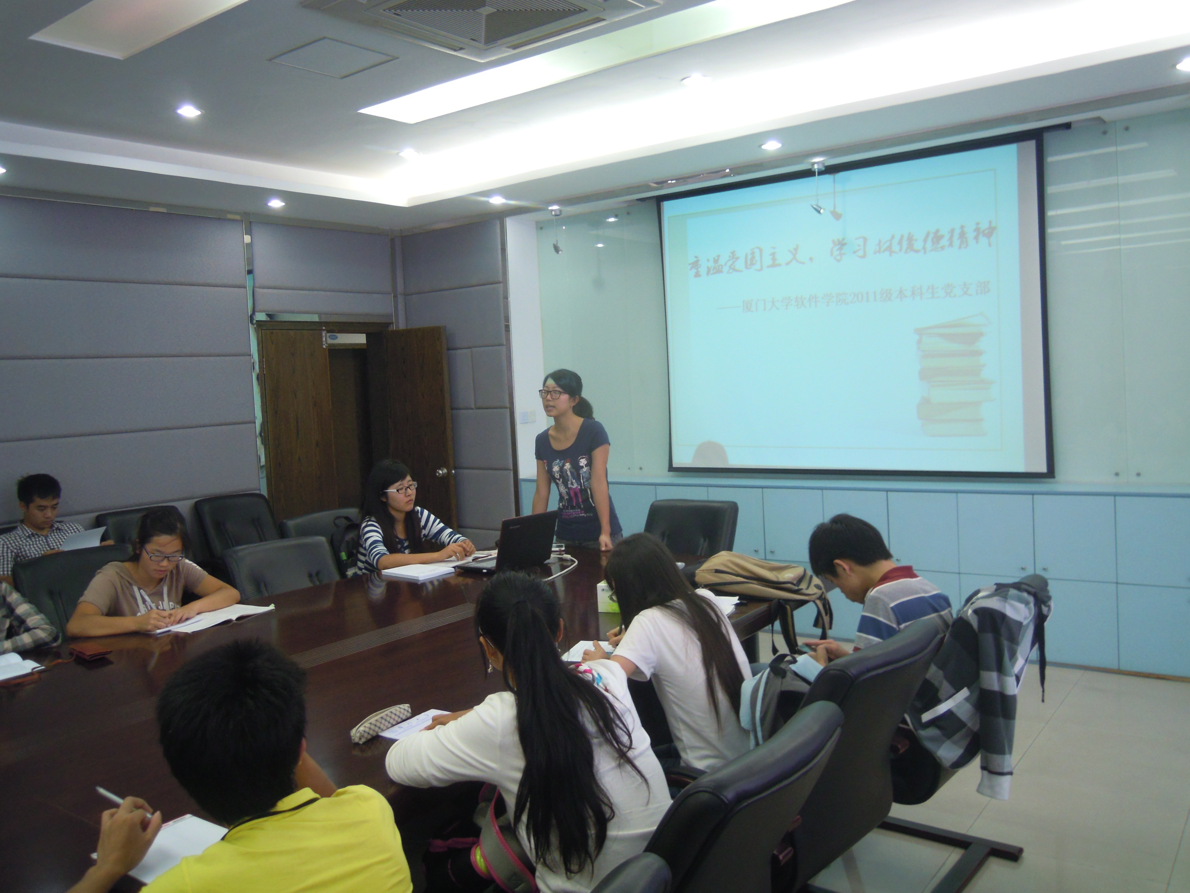2012年10月22日中午,厦门大学软件学院2011级本科生党支部在软件学院办公楼306会议室召开“重温爱国主义,学习林俊德精神”为主题的民主生活会,党支部全体成员和积极分子出席会议。本次民主生活会以钓鱼岛事件和林俊德院士事迹为背景。