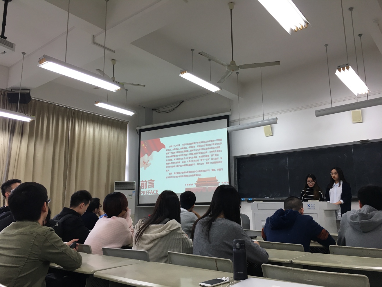 2017年11月20日,软件学院2014级全体本科生齐聚海韵教学楼201教室,开展政治理论的第三次学习。此次政治理论学习的主题是习近平总书记关于青年和共青团的重要讲话精神学习。学习活动由辅导员李加冕主持,2014级本科3班负责此次学习活动的开展。