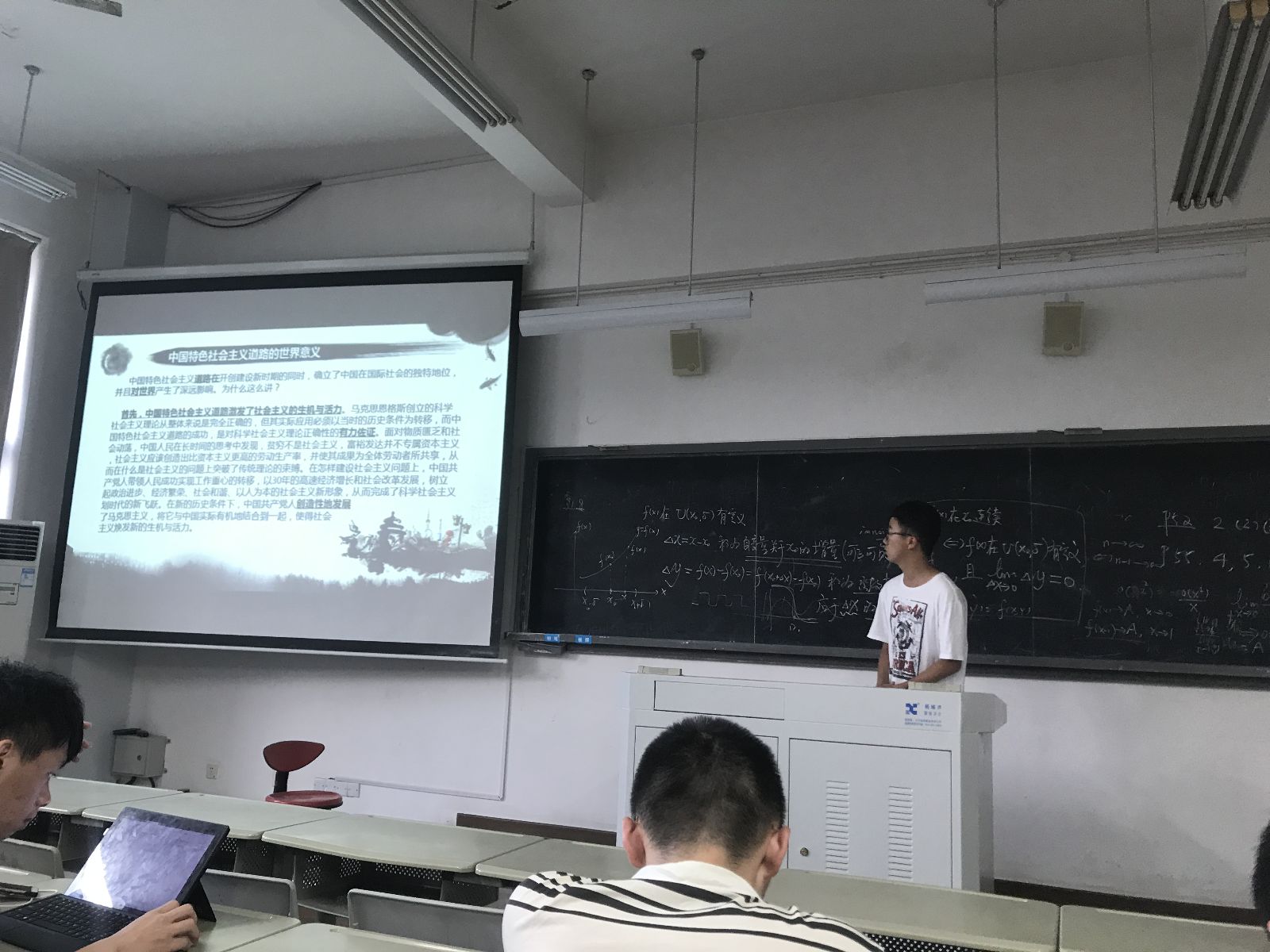 王朝龙同学带领宋彤、荣布宇、王锦涛同学一起就中国特色社会主义道路方面进行了研究,包括中国特色社会主义从理论和实践结合上,回答了在我国这样一个具有五千年文明的大国,实现怎么样的社会主义现代化以及怎样实现社会主义现代化这个根本问题;中国特色社会主义是我们党带领人民在我国完成国家独立和民族解放的历史任务后,为接着完成国家富强、人民富裕的历史任务而开辟出来的正确道路;中国特色社会主义是我们党在总结新中国近30年社会主义革命与建设曲折发展经验的基础上,为实现国家富强、人民富裕而进行的历史选择;中国特色社会主义是在我国改革开放和社会主义现代化建设进程中,为实现国家富强、人民富裕的伟大理论创新和实践创新。通过分享,进一步明确了新中国必须坚定不移的走中国特色社会主义道路的必要性。