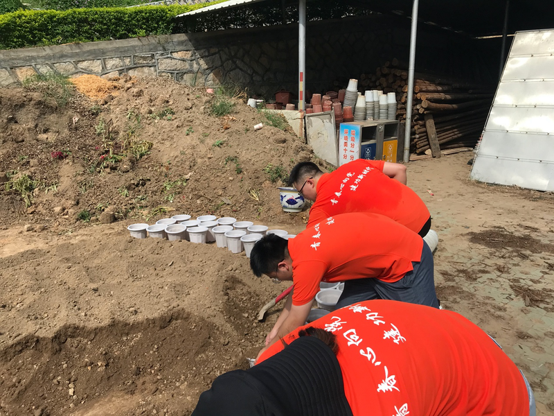 下午的时间里,实践队员们去到学校水库旁的花圃进行了浇水和种花流程的学习,了解了这些学校每次大型活动用的花草,都是绿化人员精心栽种培养出来的。绿化师傅热心的教学,让队员们了解到了看似简单的种花也有很多学问,需要用心对待每一盆花草。绿化师傅还说,他们种出的花送走了一批又一批的毕业生,这也让他们更用心地对待整个花圃。同样的,实践队员们也体验了浇水绿化师傅的艰辛,在烈日的暴晒下,一片区域的灌木需要浇水一个半小时。实践队员们在绿化的劳动中学习到了很多。