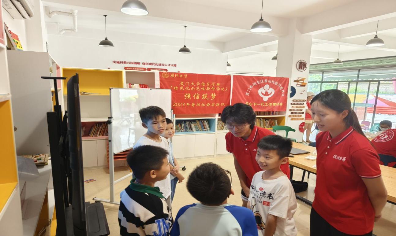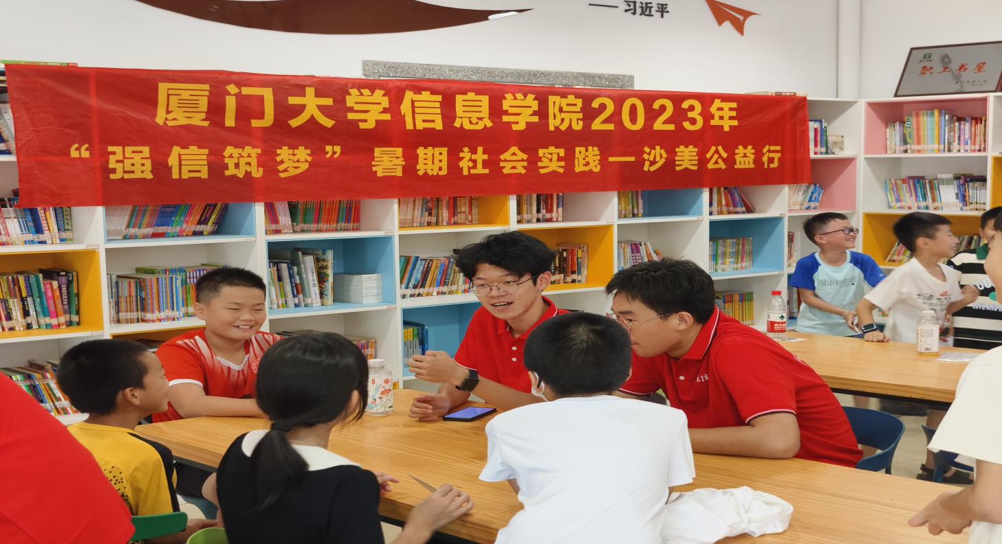 7月21日起,厦门大学信息学院“强信筑梦”暑期实践队一行15人走进福建省厦门市翔安区沙美社区“近邻书屋”沙美公益图书馆,为暑期留厦小朋友开展系列公益编程教学和红色经典故事读书会,用校史故事、红色经典、编程魅力,点燃小朋友对厦大的向往、对历史的传承,对科技的热情!