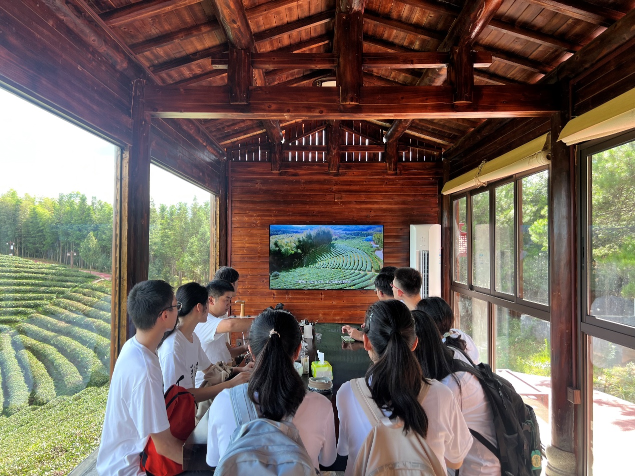在金映生态茶园的三茶融合体验馆,实践队员们在茶园工作人员的介绍下,了解到了金映茶叶家庭农场理事长严金友同志在习近平同志的叮嘱与鼓励下创业从“屡战屡败”到“屡战屡胜”并带领乡亲们一起致富的故事。2002年4月7日,时任福建省省长的习近平同志到金映茶园的茶山实地调研,在听了严金友同志的创业故事后,习近平同志对严金友同志嘱咐道:“从此以后,你就不要屡战屡败了,我预祝你屡战屡胜!你不仅要自己致富,还要带领乡亲们致富。”这些年,严金友同志牢记嘱托,依托家乡良好的自然资源,逐步扩大茶山面积,努力把茶产业做大做强,带领更多村民共同走向致富的道路。