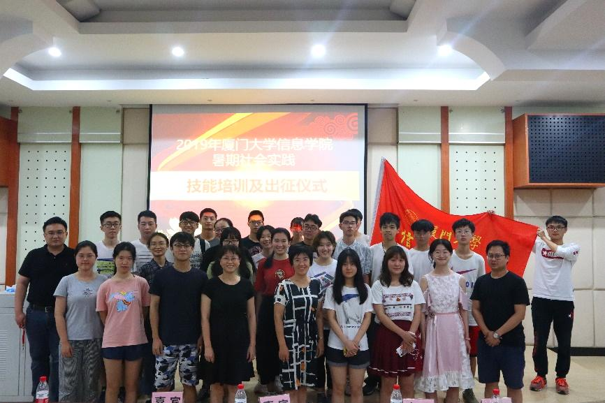 2019年7月15日晚,2019年信息学院暑期社会实践出征仪式在海韵教学楼504室成功举行。学院党委副书记李承华、学院团委书记唐腾凤、团委副书记黄艺明、辅导员陈晨、廖炜以及学院全体实践队员参加出征仪式。
