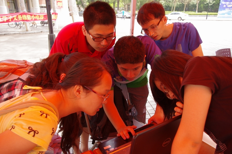 2012年5月13日上午9:00-12:00,软件学院与物理与机电工程学院的学子们在三家村广场,联手为离退休教职工义务维护电脑软件和维修电脑。软件学院十多名志愿者参与维修活动。