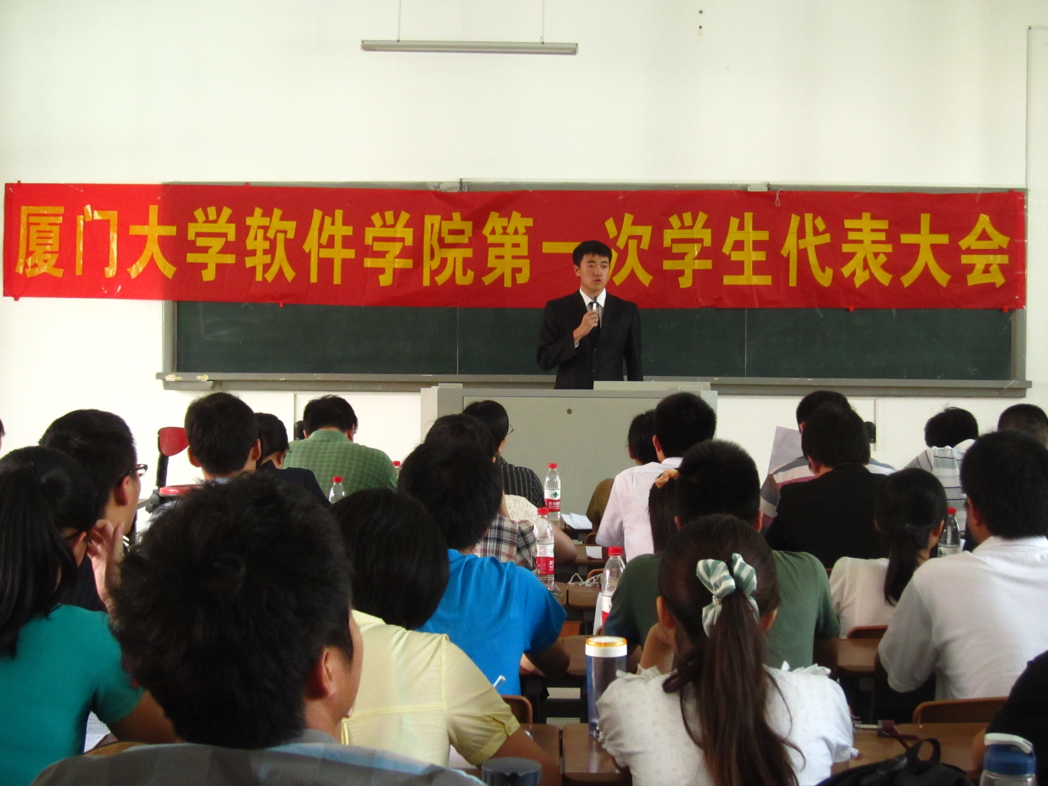 2012年6月27日上午,厦门大学软件学院第一次学生代表大会在漳州校区主楼4号楼508隆重举行。由本科各班推选的56名学生代表参加会议。软件学院党委副书记夏侯建兵、刘钟南、团委书记葛学凤、团委副书记李加冕、李绍玉、辅导员刘锦锗、刘茜出席会议。大会由团总支书记林婵主持。