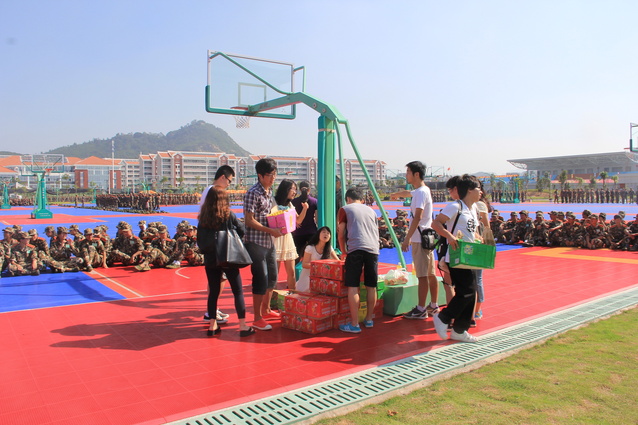 虽然正值酷暑,烈日当头,骄阳似火,但是软件学院正在军训的新生丝毫不惧酷热天气,训练严谨有序,展示出积极向上的良好风貌,得到老师与学生会干部的一致称赞。训练休息期间,老师和学生干部们关切地问候新生,向他们了解军训情况,互相交流军训经验,并为他们加油鼓气。随后,学生干部们给军训新生逐一送上事先准备好的饮料和香甜的红苹果,新生们则通过热烈的欢呼声表达了他们的开心和幸福之情。