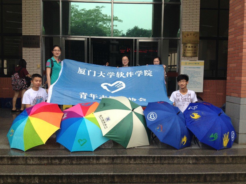五月雨季,潮湿而闷热。雨虽为空气带来清新,却也为同学们出行带来许多不便。为了让同学们在突如其来的大雨中也不必担心没带雨伞而淋湿,厦门大学软件学院举办了第二期“厦雨有你” 爱心雨伞募捐活动。5月10日和5月11日中午,软件学院青年志愿者协会的同学们在三家村广场边搭起了一个个爱心帐篷,为图书馆募捐爱心雨伞。