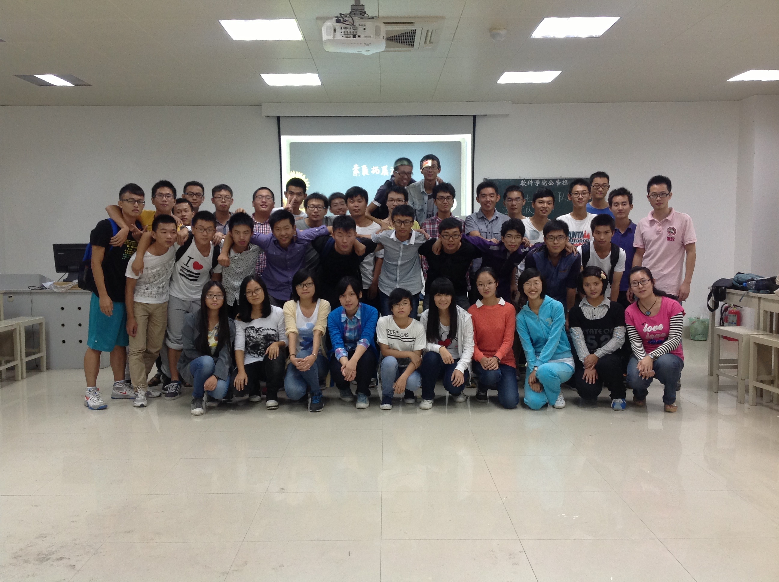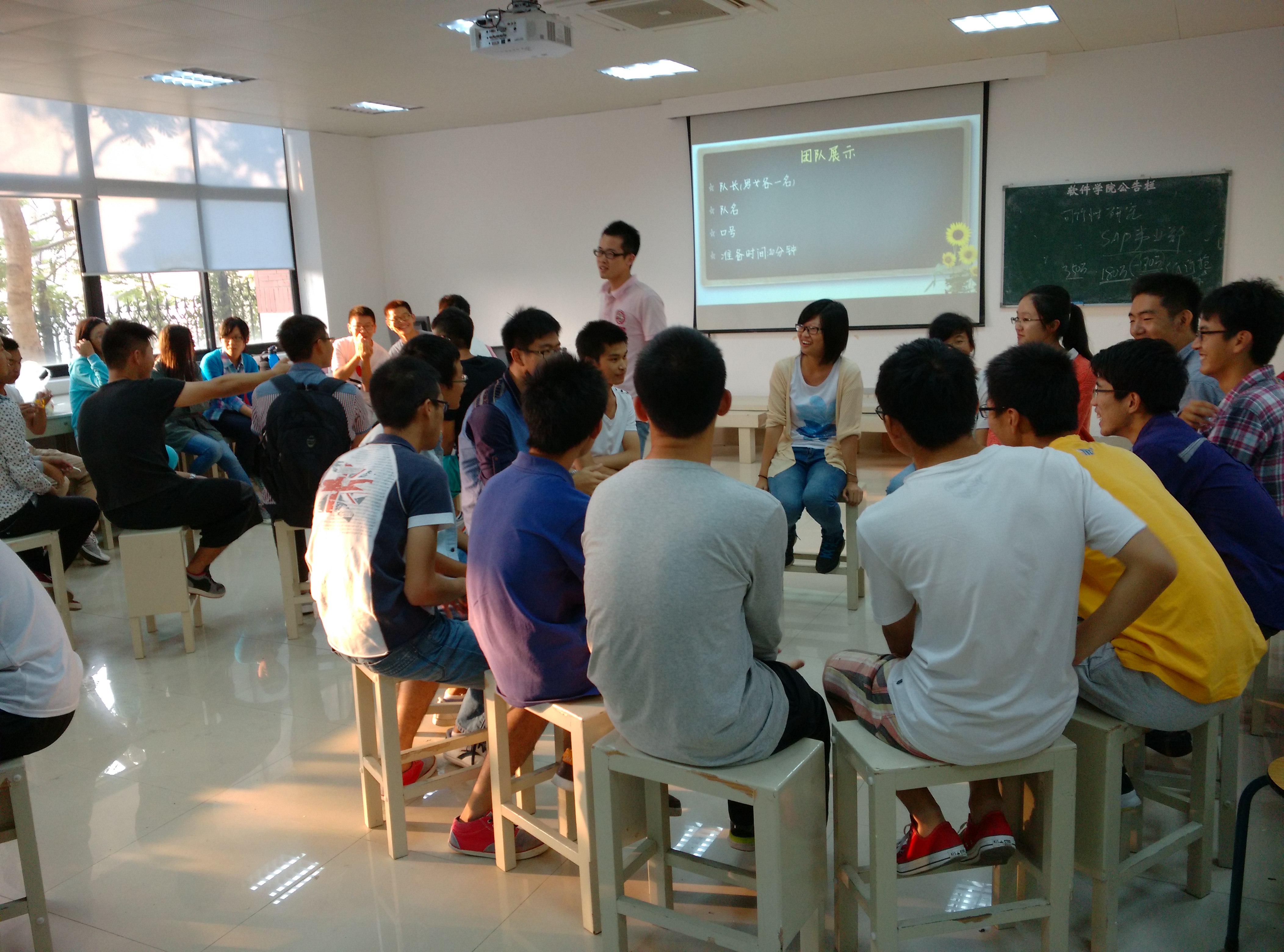 10月17日下午,软件学院2014级本科二班学生在海韵科研楼106教室举行素质拓展破冰活动。本次活动由助理辅导员2014级硕士研究生陈晨和刘伟强策划、组织和主持。