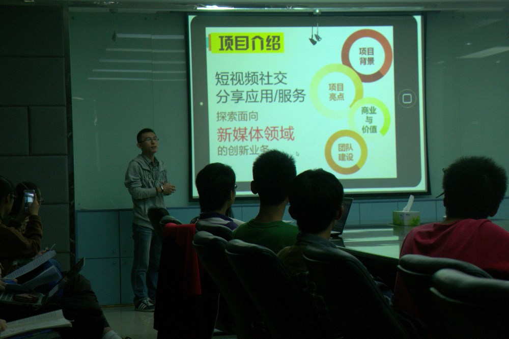 软件学院2011级本科生张璐首先发言,讲述了作为“V Group”领导者的别样经历。他所在的实践团队刚刚在9月份获得了中国大学生服务外包创新创业大赛企业命题组二等奖。他提出,选择导师是成功的第一步,导师所提供的指导意见对团队的发展具有建设性意义。随后,他介绍了实践活动的主要步骤,使得同学们对其有了初步的了解。他认为团队成员应该多模块多方向的了解主题背景,从细节出发分析问题,融合其他方面知识探索新领域,寻找增值服务为项目锦上添花。他还着重强调了团队建设的重要性,唯有坚守准则,方能一步步走向终点。更令人欣赏的是,张璐形象生动的讲说中,渗透着一点一滴为人处世的道理,使人深深折服。