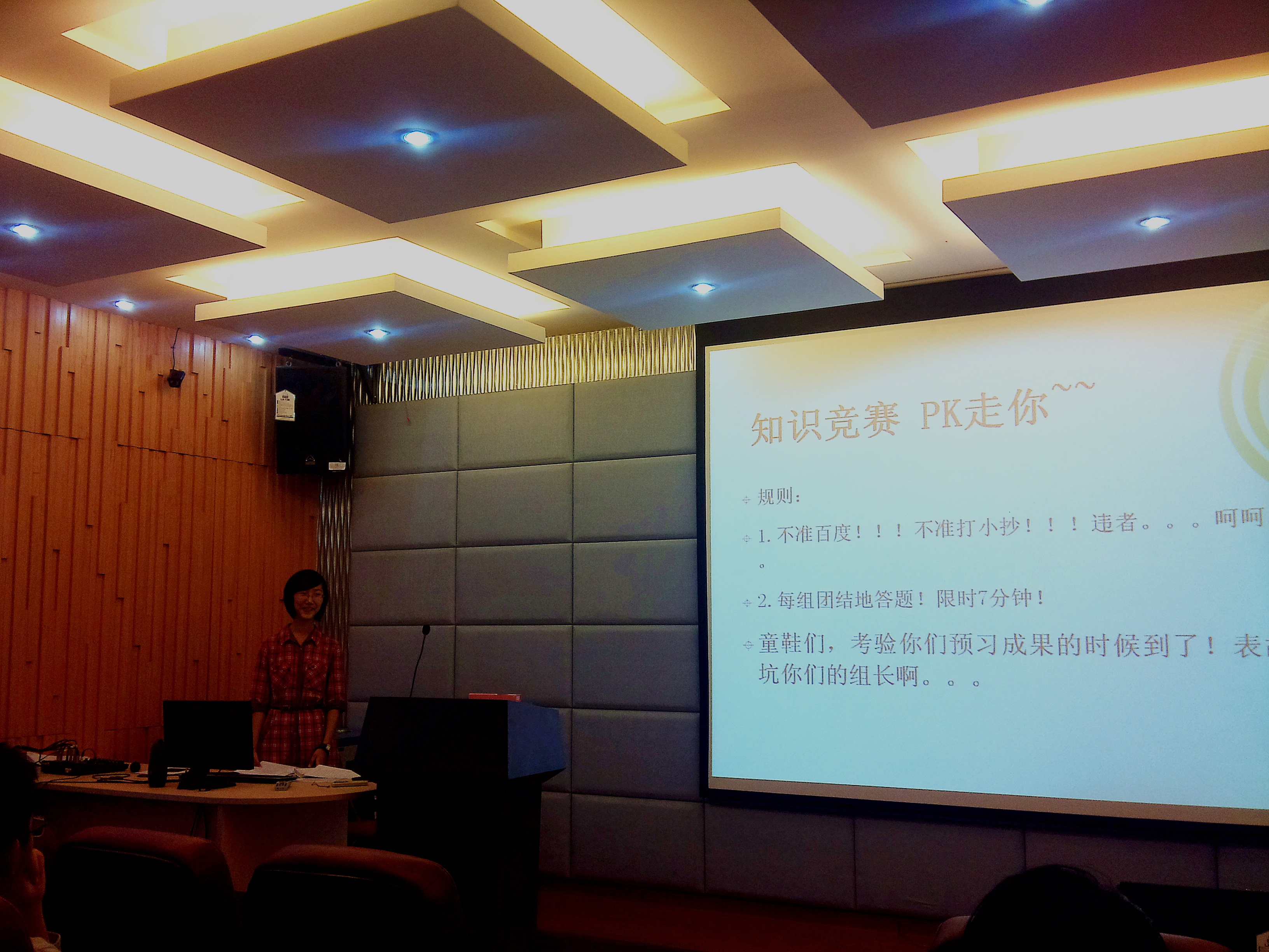 活泼有趣,寓教于乐是此次团课的特色。2班的同学随机分为三组,通过团队竞争与合作提高大家参加团课的热情与兴趣。团支书通过社会主义核心价值观的二十四个字切入团课,将二十四个字分为国家、社会、个人三组进行详细阐释。各组现场比拼记忆背诵二十四个字,让二十四个字深入同学心中;各组又进行“你表演我猜”游戏,由队员背对屏幕,通过看表演答出违纪现象和违背社会主义核心价值观的行为,加深同学对二十四个字的理解。三个组随后还进行了现场知识竞赛,同学们团课前都对内容进行了预习,因此题都答得很不错,这也体现了同学们对这次团课的重视。最后,软件学院2014级本科生党支部副书记党灿、组织委员梁浩然作为党员代表发言,提出自己对社会主义核心价值观的理解;同学们纷纷分享自己在团课中的收获。李昊宇和李天宇还献歌《我的祖国》,将现场气氛推向高潮。
