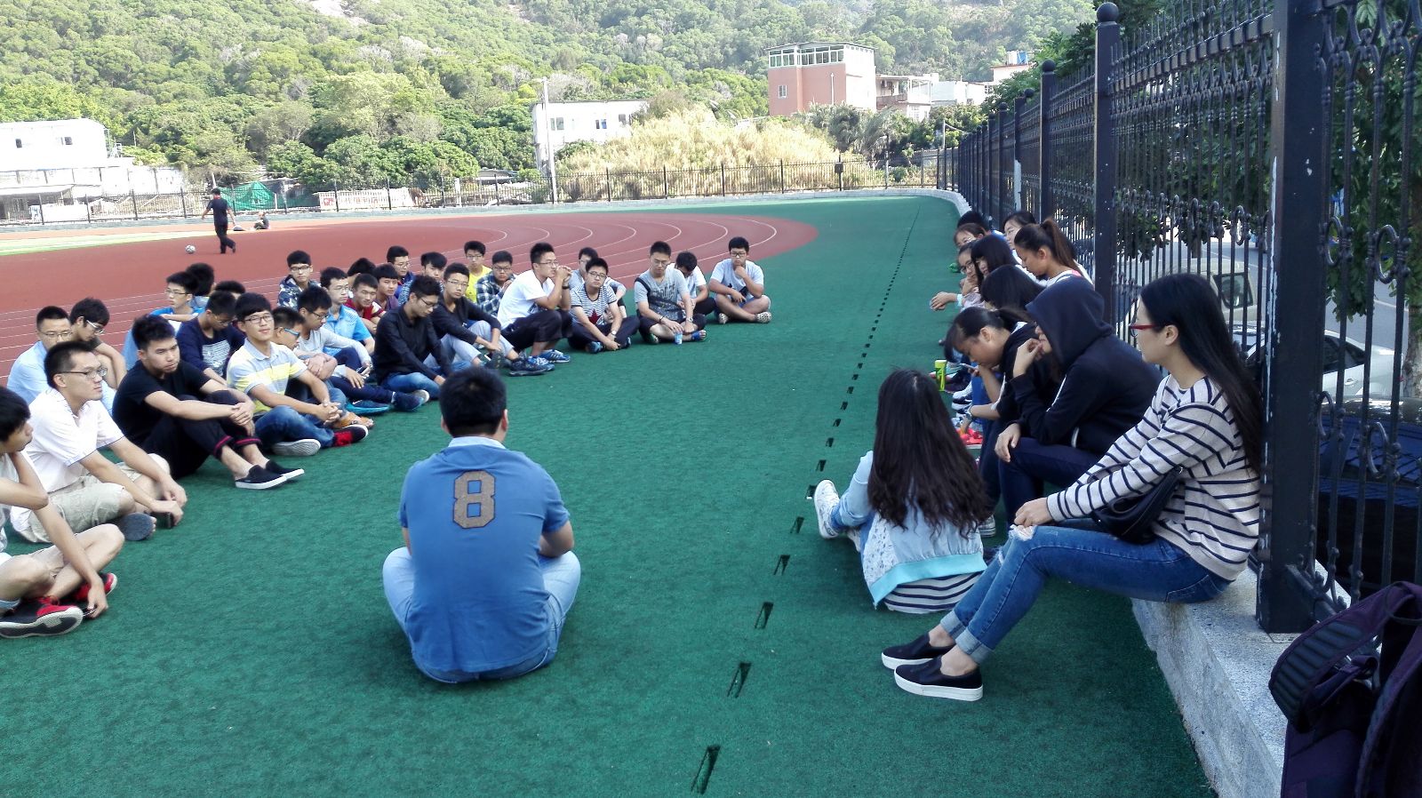 11月15日上午9时,厦门大学软件学院2015级三班的同学在操场上举行关于创建班级良好学习氛围的班会活动,会议主要由三班班长王铮镝同学主持,参加此次班会的有三班全体同学以及两位助理辅导员白幽静学姐和陆垚杰学长。