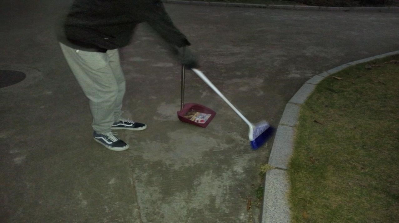 活动于清晨六点开始,天还灰蒙蒙的。同学们分成几组,开始清扫海韵二至海韵四的一条大道上的落叶及垃圾。清晨寒风习习,同学们的心却炽热温暖,学校的道路上,是他们辛勤工作的身影。六点半活动结束,同学们望着清洁了许多的道路,感到十分具有成就感。之后,一班的志愿者们合影留念。