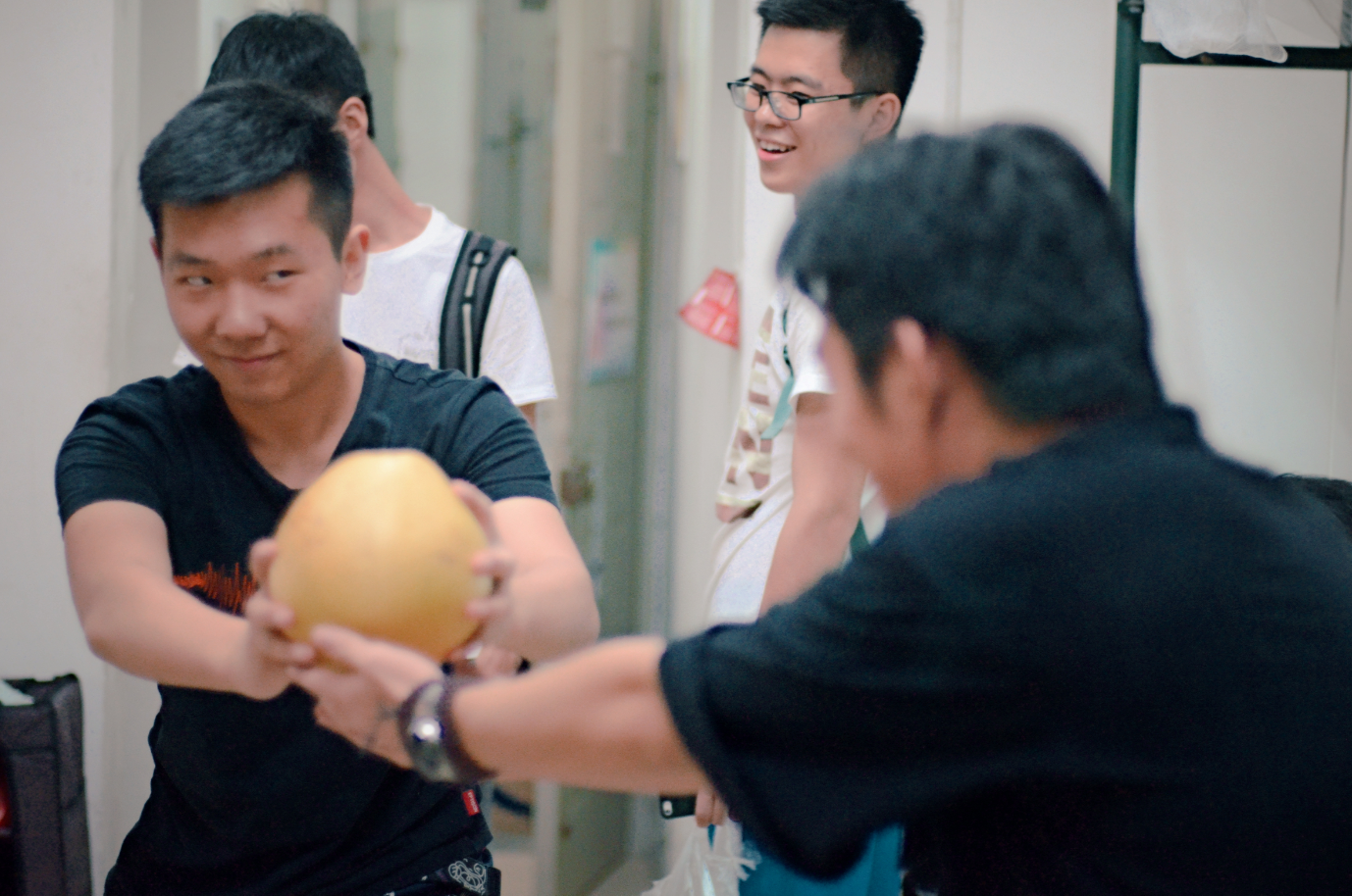 在活动之前,班委、团支委们聚集在一起出谋划策,旨在给同学们送上一份“迟到的”中秋节惊喜。最后决定每个宿舍送柚子和零食。