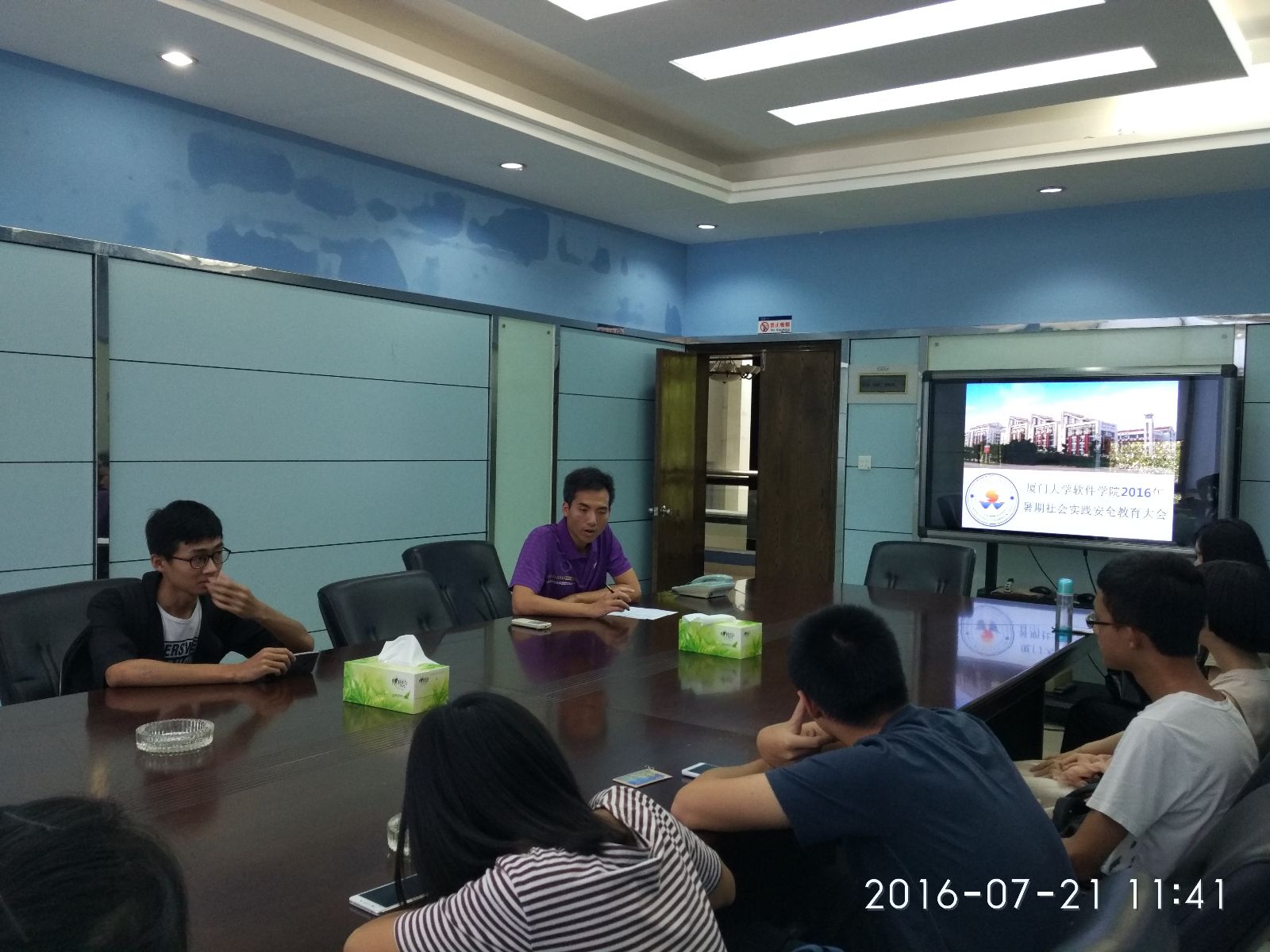 7月21日中午,软件学院2016年暑期社会实践安全教育大会在海韵行政楼A205会议室顺利召开。本次会议由学院团委副书记李加冕主持,各实践队代表参加了此次会议。在会上,李加冕就实践活动的宣传工作、安全事项及材料提交三个方面进行了详细说明.