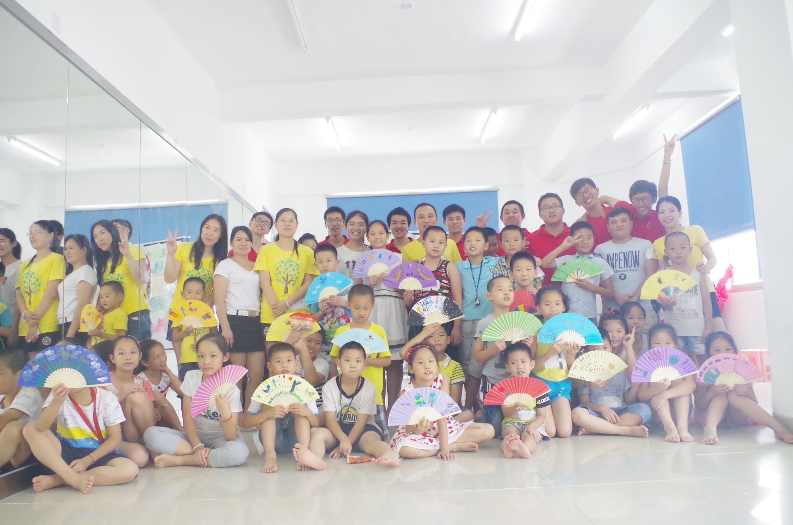 亲子折扇是由小朋友们选择自己喜欢的彩色折扇,然后与爸爸妈妈一起完成扇子上的画作。古灵精怪的小朋友们各显神通,有画蓝天白云的,有画青山绿水的,还有画花鸟虫鱼的,更有甚者还有小朋友在扇子上吟诗作画呢。有些小朋友为了完成画作搞的全身都是花花绿绿的颜料,但不管怎么说,小朋友们对自己的作品还是很满意呢。