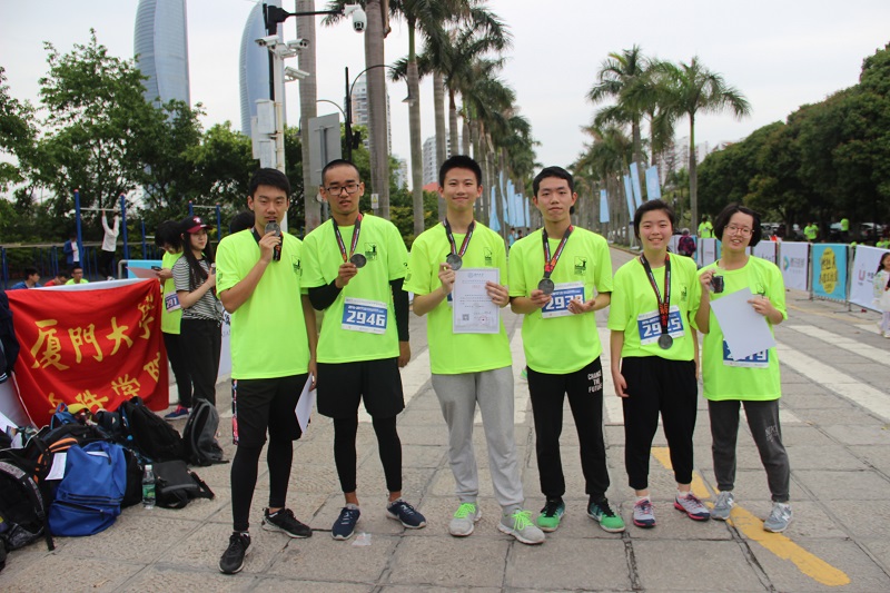 九点三十分,七个方阵在起跑枪声响起后,相继出发,沿“科学艺术中心—群贤路—三家村广场—白城校门—厦大幼儿园—海滨路—海滨餐厅—海滨东区与法学院交叉口上坡—凌云隧道—厦大水库—凌云路—勤业餐厅—逸夫楼—博学路—嘉庚楼群—科学艺术中心”路线环校奔跑一圈。十多分钟后,参赛者们纷纷奔向终点,纵然汗水打湿额前的碎发,疲惫喘气,但运动后明亮的眼神、通红的脸庞却显得活力满满,感染力十足。