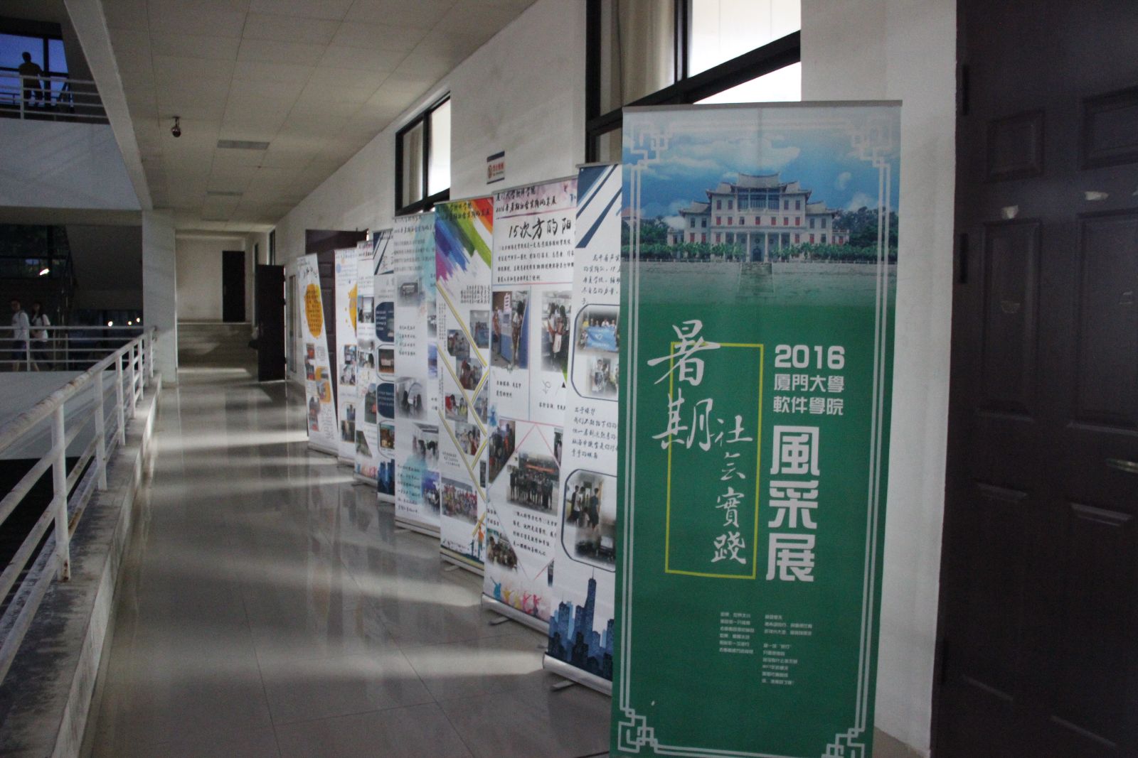 在总结表彰大会当天,软件学院还在学院一楼大厅以及总结表彰大会现场进行了2016年社会实践风采展。次日,在学校三家村广场也进行了一天的风采展。通过社会实践风采展,集中向全校师生展现出软件学院社会实践活动的风采和取得的丰硕成果。