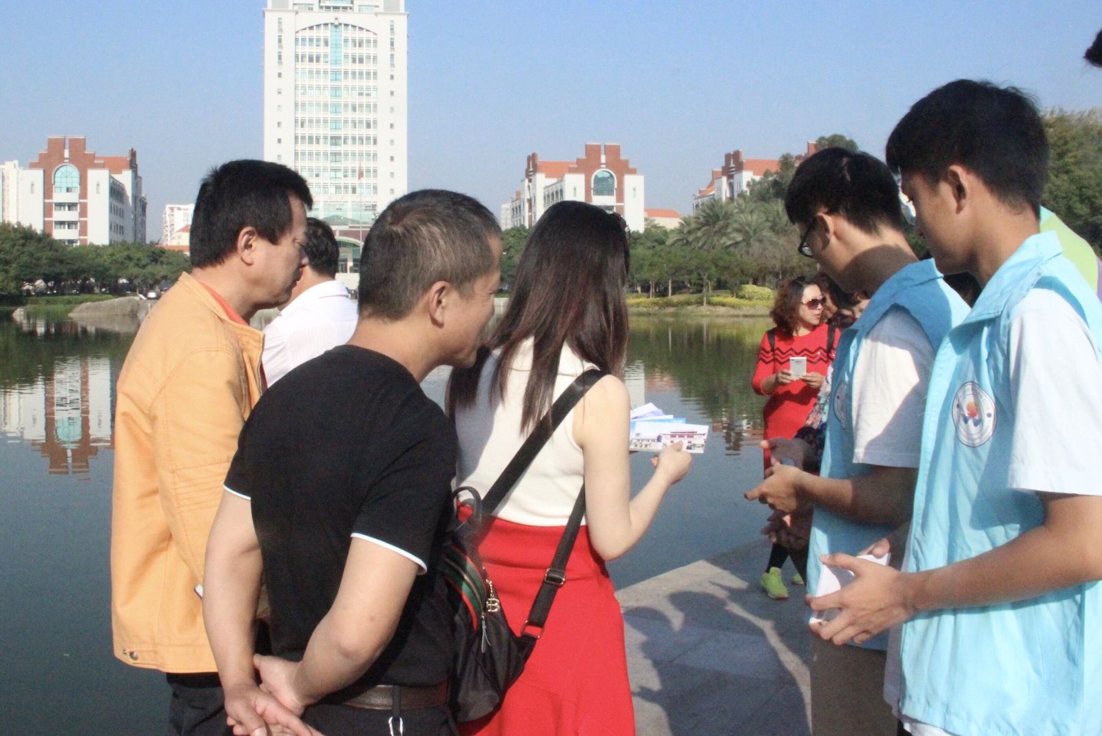 青协志愿者们早早来到了活动现场,他们身着统一的天蓝色志愿者服,精心地布置着活动现场,摆开长桌,挂上明信片,一道道忙碌的身影,为这个秋天增添了一丝蓬勃的气息。