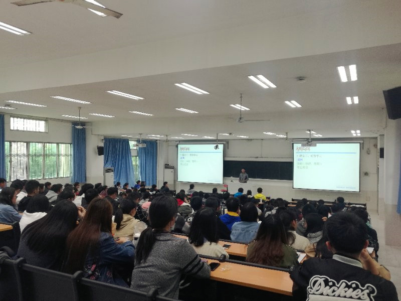 下午2点30分,在李绍玉老师的介引下,黄起星学长在热烈的掌声中开始了以“大学生活-不后悔”为主题的主题演讲。学长从锻炼身体、学会做人、好好学习、学会做事、就业创业等五个方面分享了自己在校四年期间的经历,以及毕业之后的从业经历和职场感悟,通过精彩的故事与大家分享了自己如何从一名基层职工到一个月转正,两个月成为部门经理,六个月成为公司股东,再到集团副总裁的人生经历。他的励志故事深深地鼓舞了同学们。