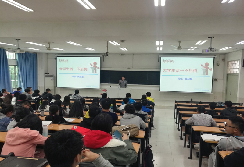 2017年12月18日下午,厦门大学软件学院2011届本科生毕业生聚英教育集团副总裁黄起星院友应邀在海韵学生公寓201教室为2017级本科生新生做专题演讲,分享大学故事,讲述成长经历,传授经验,指点迷津,引导大一新同学做好生涯规划,不负美好年华。