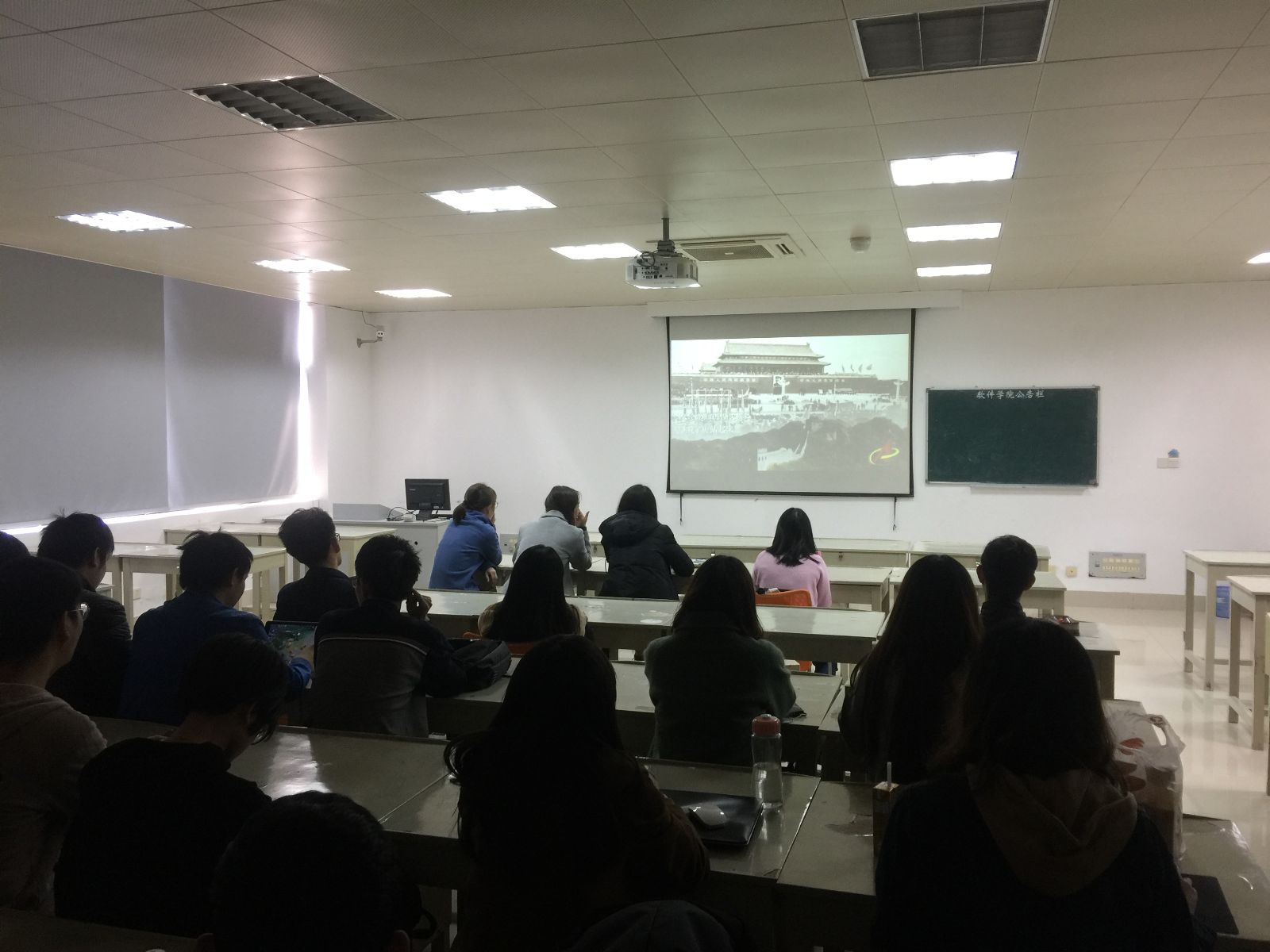 首先,团支书艾星向大家总括地介绍了十九大的成果及近五年来的变化,并于同学们一道学习了新华社政论片《领航》,共同感受了近代以来中国的荣辱兴衰和近五年来中国取得的重大成就和辉煌飞跃。