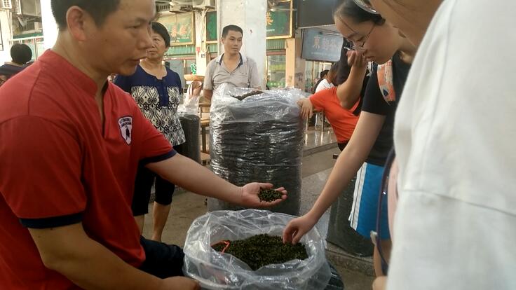 下午实践队联系了当地的一家茶行。茶行老板先泡了清香型的铁观音春茶,后面又请实践队品味浓香型的铁观音秋茶。春茶颜色较淡而清新,秋茶颜色较浓而提神。铁观音泡七次过后还有香味,不愧是全国名茶。老板演示过后还请实践队员上手泡茶,亲身体验过后队员们感受到泡茶喝茶本身就是生活必不可少的一种仪式。