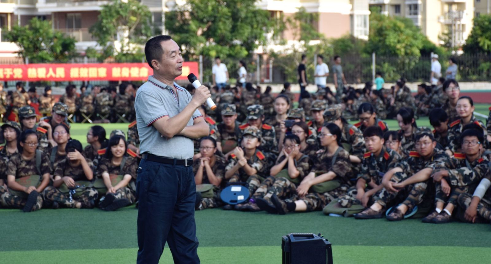 活动伊始,院长廖明宏作为教师代表发言,他提到军训是大学生活中极其重要的一部分,希望同学们认真对待,值此中秋佳节到来之际,他还提前给大家送上了中秋的祝福。