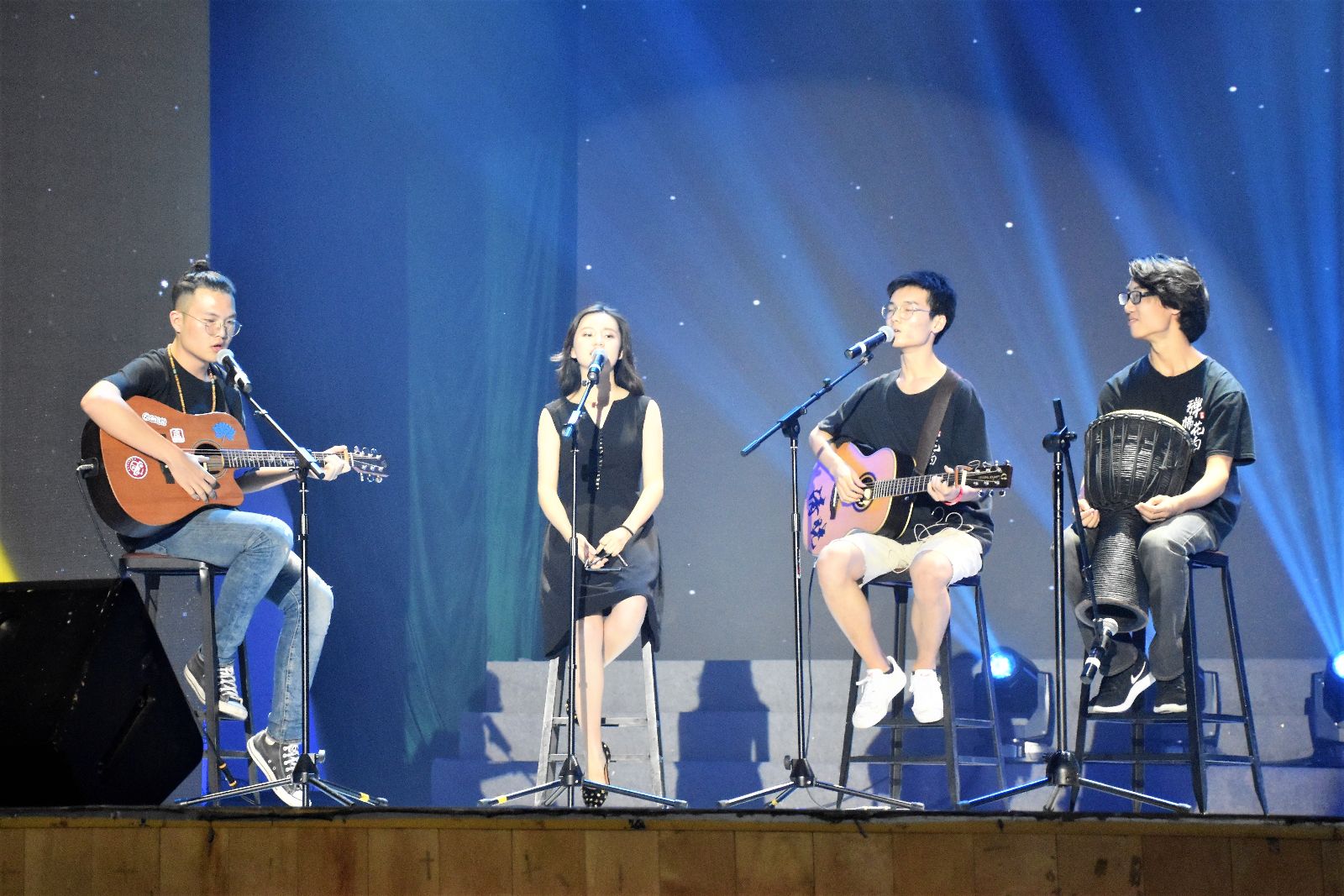 紧接着,慢走乐队登场了。两把吉他,一只鼓,四个人,将《乌兰巴托的夜》的安谧宁静演绎的淋漓尽致。《Bang Bang》歌舞则用劲爆热辣的节奏点燃全场的激情,观众们的心跳仿佛也被这旋律所牵引。欣赏完这精彩的歌舞,便又是多姿多彩的歌曲串烧。接近尾声是《今天,厦大人这样爱国》的朗诵,各学院的学生会主席们用文字声音表达着对祖国的赤子之心。最后,便是《歌唱祖国》的手语表演,在表演将结束之际,各学院学生护旗方阵依次走上舞台,用挺拔的身姿诠释当今厦大学子的报国爱国之情。