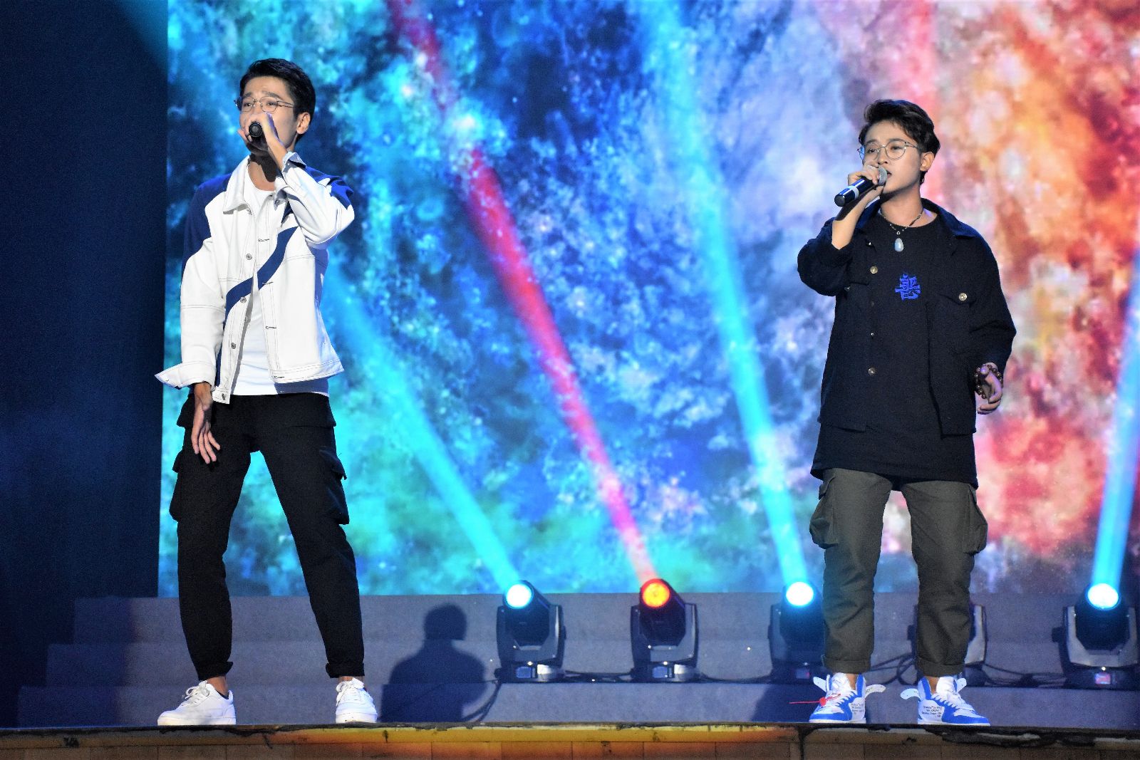 首先,由我院同学表演了《军训那些事》情景剧,他们用诙谐幽默的方式,生动再现了辛苦劳累却刻骨铭心的军训时光。接着,便是由备受瞩目的施天宇和游子逸同学带来的歌曲《陷阱》,歌声低沉哀伤,却动人心弦,观众席后方突然升起的一大片气球,伴着动人的歌声和屏幕上的烟花流火,在这个夜晚绽开万千霓虹。接下来的歌曲串烧《答案》更是将气氛推向高潮,观众们随着音乐的起伏爆发出阵阵尖叫和欢呼。